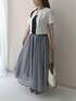 ボレロ丈のニットカーデは身長の低い私でも脚長にバランス良く見せてくれるお気に入りのアイテムです。 今回はふわりと軽く裾幅たっぷりのチェックスカートと合わせた上品さも感じられるオトナカジュアルコーデです。