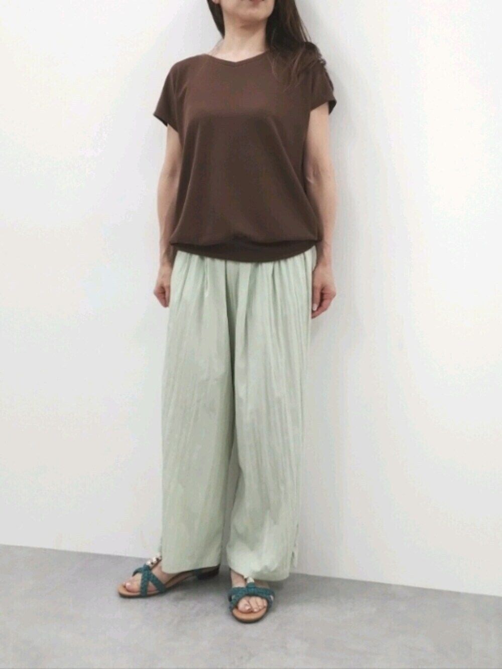 プッチージョから、リラックス感たっぷり、ラフな低身長コーデです。 ゆとりのあるカットソートップスと薄手のワッシャー生地パンツのコーデは夏の暑い日にピッタリで着心地も楽ちん♪
