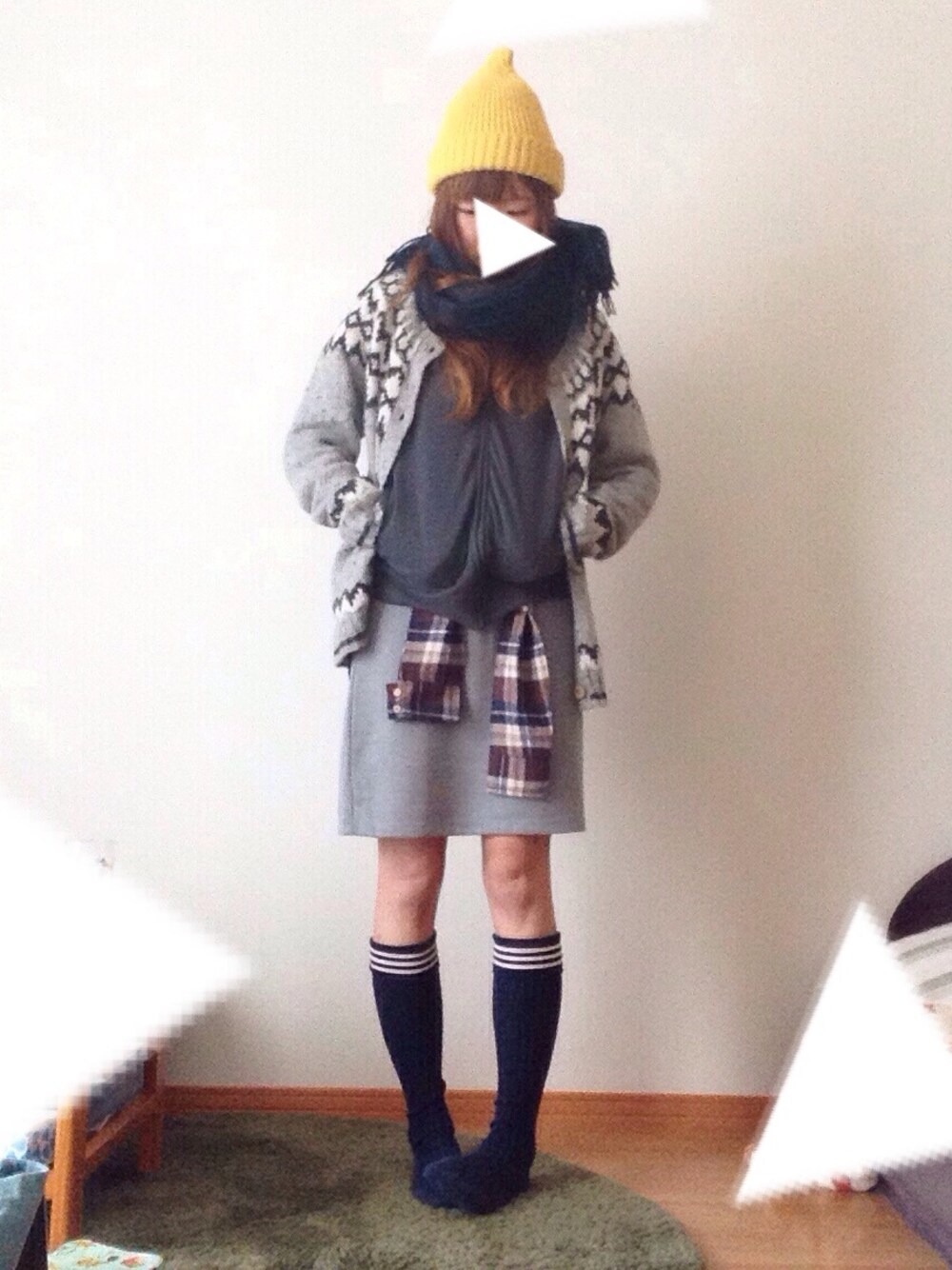 ヨガだから中は適当(°_°) 寒いから首も守って 帽子もかぶって ぬくぬく◎ でも足は出す矛盾ね。 靴は白スニーカー *
