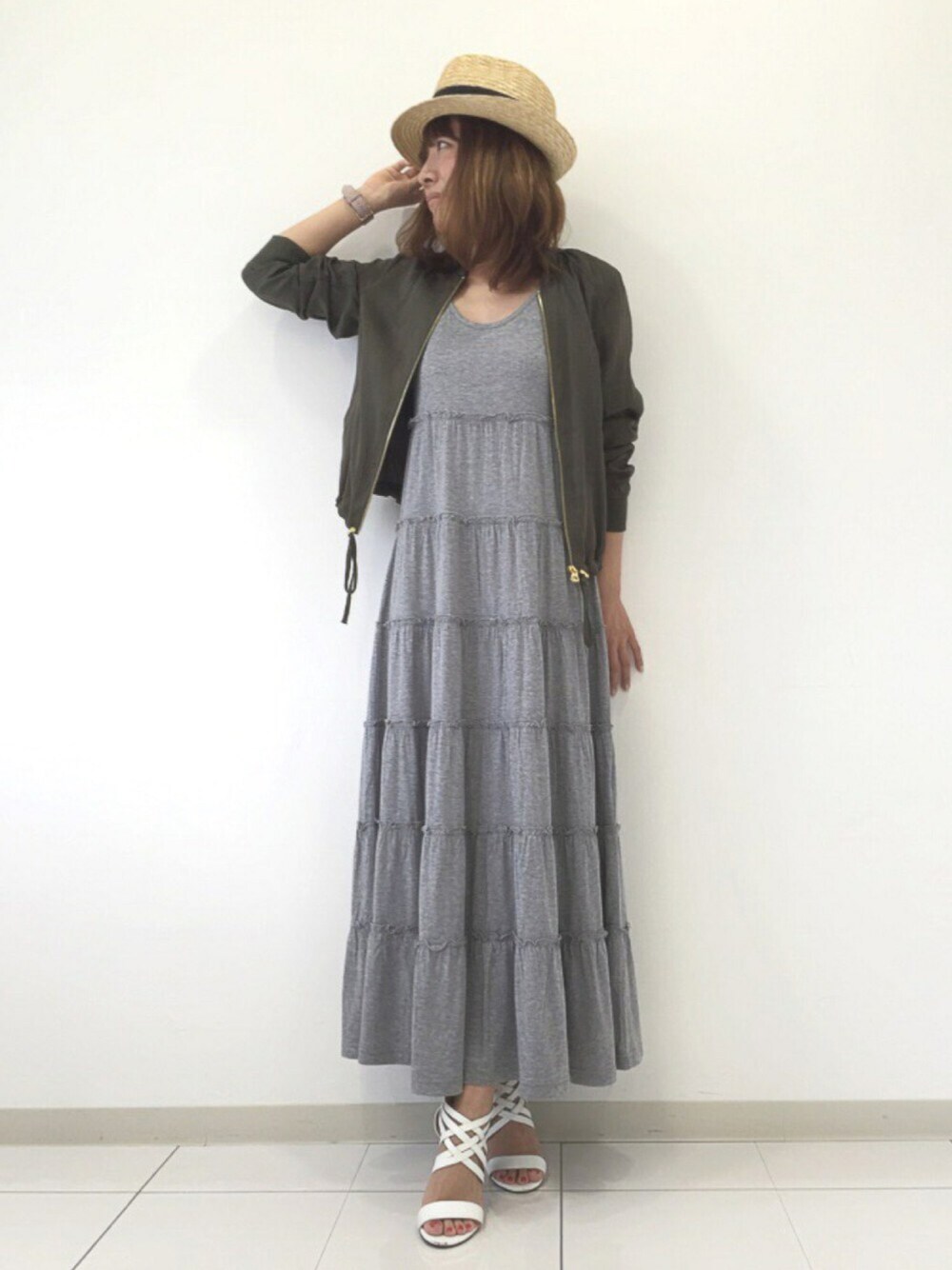 ティアードで甘めのマキシOPにブルゾン⭐︎ ジャージーだから着やすいし楽(^^)