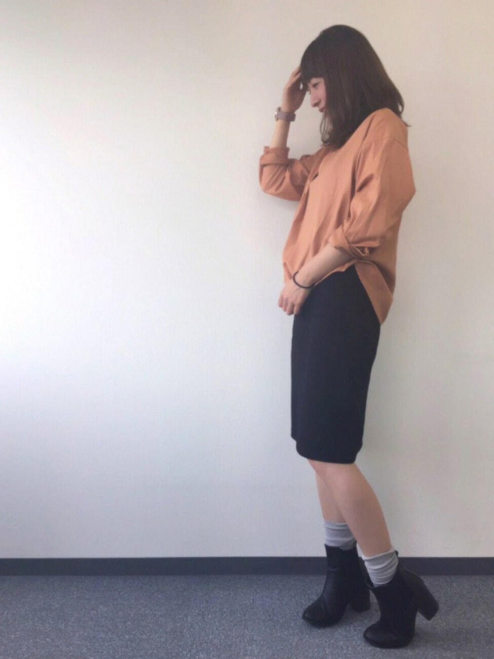 そろそろシャツが着たい! ということで秋色シャツでかっちりしつつ、 サイドゴアのブーツで崩してみました😄 明るめのブラウンと、モノトーンコーデです。 「前髪切りました?」と聞かれて。 恥ずかしくなって直す瞬間です(笑)