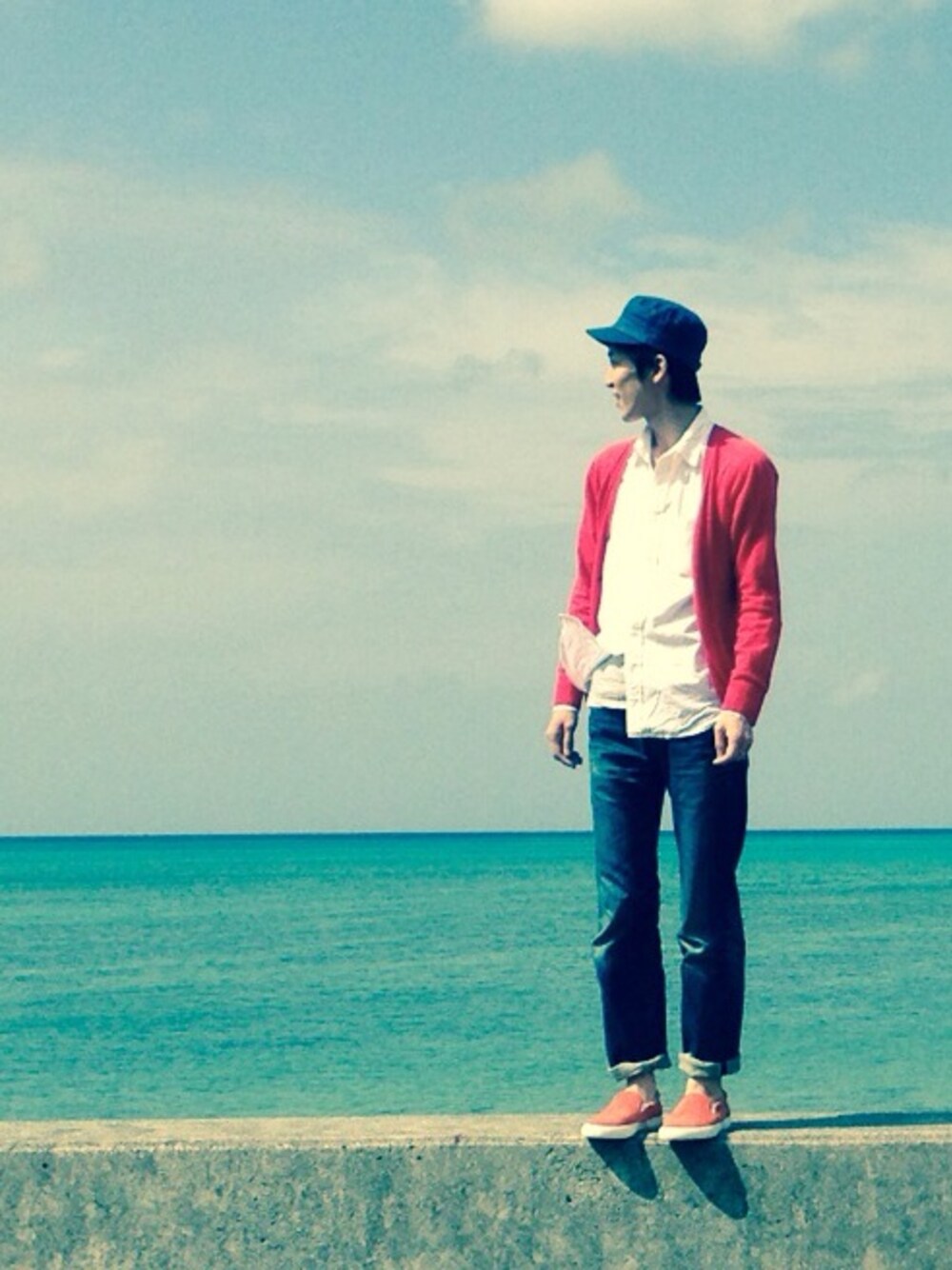 ちょっと前の沖縄旅行です。 何とも言えない良い色のカーディガンがポイント。 靴も合わせてみました。