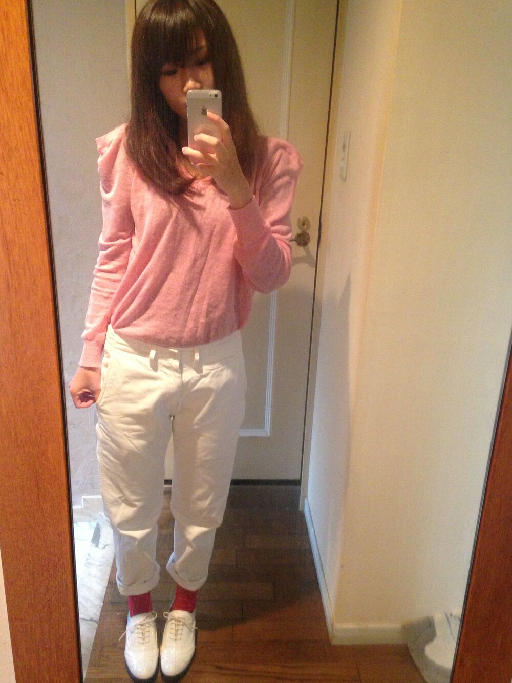code:お花見☻ tops:sleep pants:UR shoes:BEAMS せっかくお花見行くのに寒い(°_°) 気分だけでも春!ピンク!ww