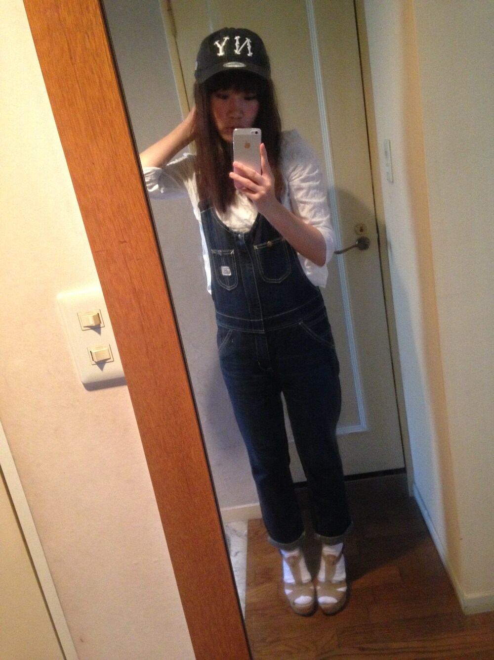 code:ぷれいぼーる☻ キャップ▷▷NEW ERA オーバーオール▷▷Lee 靴下▷▷BEAMS BOY サンダル▷▷UR ずっと欲しかった細身のオーバーオールをげっとしまして。 でもキャップかぶったら結局こどもみたいになったのでキャップなしで出かけましたww