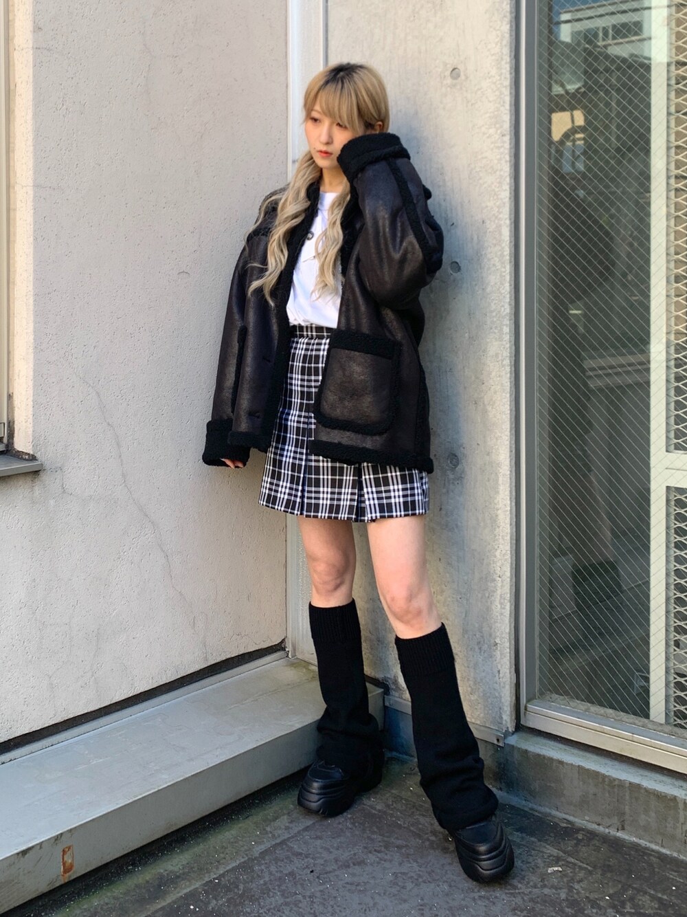 ボアキリカエランチコートは中のボアがしっかりであったかい◎ ビックサイズなので腰の位置を高く見せるためにトップスはインで合わせてみました!
