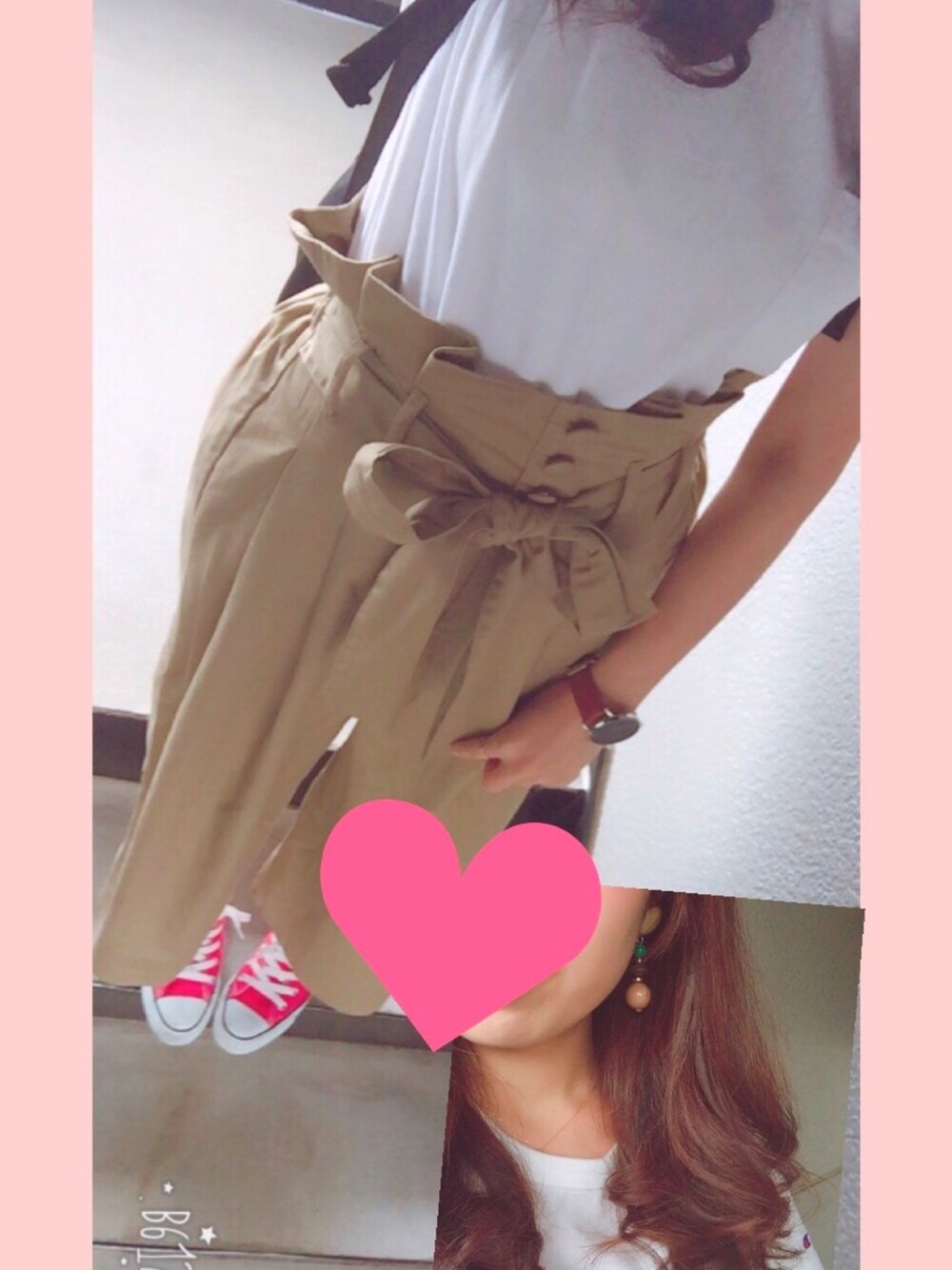 na ♡*°のチノパンツ「L*リボンツキ/ワイドパンツ 765419」を使ったコーディネート