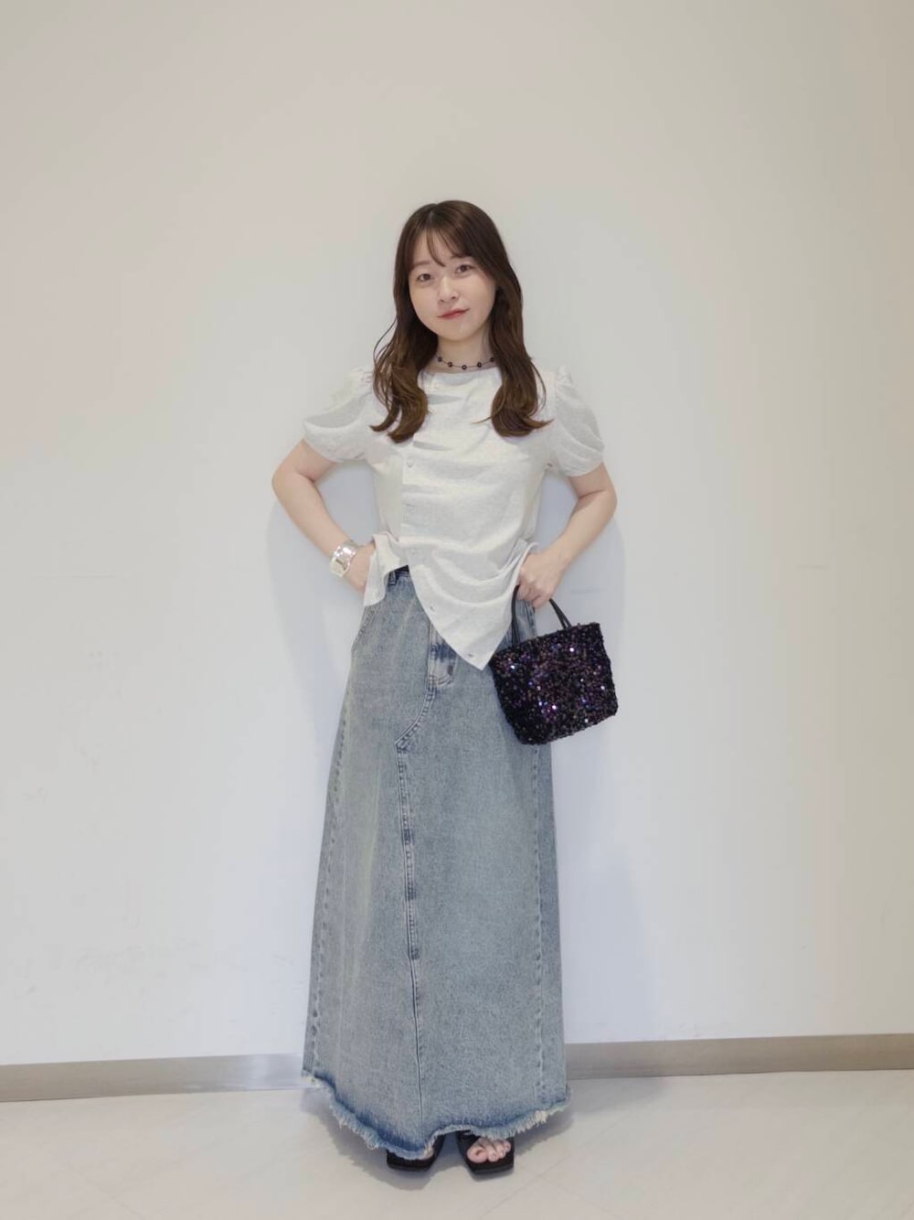 さやか(KBF ルミネ北千住)のショルダーバッグ「チェーン付きスパンコールバッグ」を使ったコーディネート