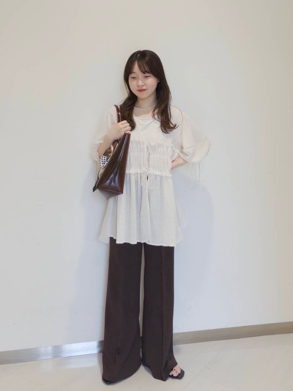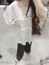 ベージュとブラウンの淡カラーコーデです✨ チュニック丈のパンツをスッキリ着たい方には、スリムフレアパンツとってもオススメです😆 チュニックも前開きになるので、梅雨時期の羽織にもとってもちょうどいいです! 袖口が紐でシルエットを大きく変えて頂けます! 是非店頭にてお試しください💕
