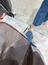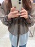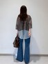 色合いがかわいちシアーシャツ。。。🩵🤎 この色の組み合わせは、着るだけで洒落見えするアイテムです!! 肌触りも良く、とってもオススメです! さしてデニムコレクションのフレアパンツ履きました! 身長152センチで、ペタンコの靴を履いて床にギリギリくらいの丈感でした! いまは少し長めの丈感がオススメなので、是非ご自身に合うサイズ確かめてみて下さい〜☺️
