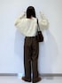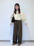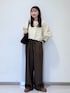 オススメのベージュブラウンコーデです☺️ フリンジのトップスは低身長でもちゃんとショート丈で足ながーーく見せてくれます✨ お袖のデザインもワンポイントで取り入れるだけで、おっ!な優れもの😆 肉厚すぎない素材感なので、フリンジでも着膨れしないで着て頂きやすいアイテムです! そして、推しパンツ!!✨ まず触り心地がとっても良い!バックスタイルもウエストがバックルで調節できるのでベルトいらずでスッキリシルエットになります🕺 お仕事アイテムにもとーーーってもオススメ!普段のパンツにちょっとアクセント欲しい、飽きちゃったなーという方には是非!!