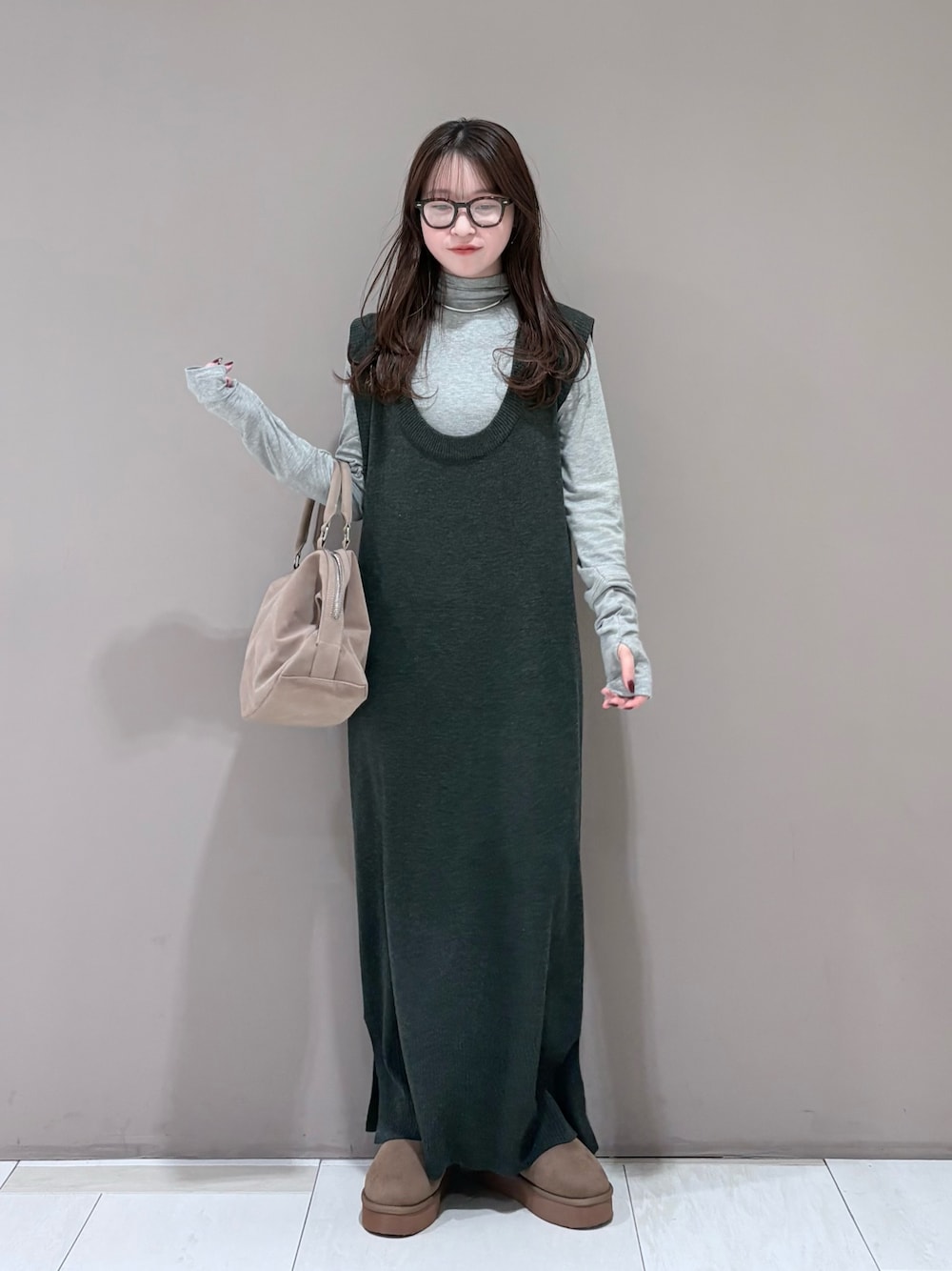ゆるっとしたワンピースのオススメコーデです🔥 身長152センチで、床スレスレの丈感でしたが、ブーツなどシューズを履けば可愛く着ていただける丈感でした😎 素材がサラッとしており、温かみがあるのに熱がこもり過ぎることのない素材感で長いシーズン着ていただけそうです! セットでハーフジップの上から被るトップスもついているのですがなくてもかわいい!着回しが効きます☝🏻😊 是非店頭にてお試し下さい!