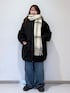 防寒スタイルです! お尻まですっぽり隠れてくれるモンスターコート! 大きめのアウターなどはマフラーなどの小物合わせで華やかにするのがオススメです✨ マフラーのチェックはピッチが違うのも可愛いポイントです☝🏻 是非店頭にてお試し下さい!!