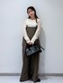 楽チンサロペットはキレイめなインナーと合わせるのが個人的オススメです!! 低身長さんでも履けるサロペットです!! 少しずるっと履いてますが、写真より少し肩紐を短く調節がまだ出来るので是非店頭にてお試しいただきたいです!! スラックス仕様なのであえて、おじスタイルにするのもいいですね👍🏻 インナーのレーストップスは柄がお花っぽくないので可愛いによりすぎずに着てもらえます! お袖のクシュクシュもポイント〜☝