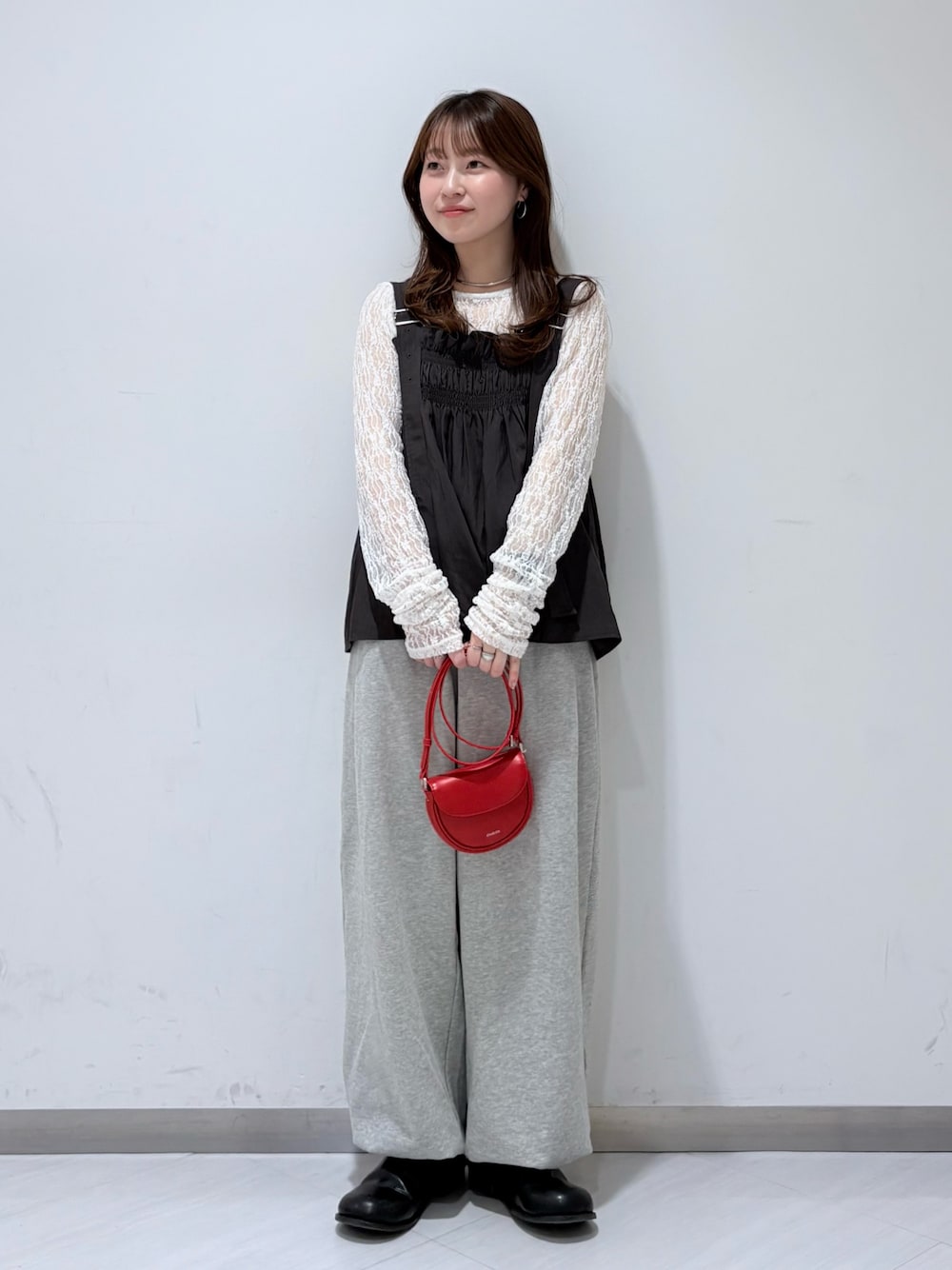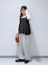グレーとワントーンコーデです!! なんとびっくり!身長152センチでスウェットパンツ履けますー!!足首にドロストがついているので低身長さんでも履いてもらえます✊🏻🔥 足首キューーっと絞って、股下のダボ付きを抑えたい方はウエストを折り返してもいいと思います!! ビスチェは胸周りがゴムで楽チン!!取り入れるだけで旬なスタイルが出来上がる、かつ、インナー次第で長ーーーく着回しもできるアイテムなので是非店頭にてお試し下さい!!