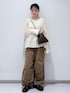 春にオススメしたいコーディネート合わせです! アイボリーなどの柔らかいカラーのブラウスに、カジュアルかつ少しメンズっぽさのあるカーキのカーゴパンツ合わせ。。いいですよね、!! 毎年春が来ると着たくなる組み合わせです😮💨💕 はは身長152センチでウエストを一回折り返して写真の丈感です!! ウエストと足首に紐がついてるので折らなくても履ける低身長さんにも嬉しいパンツです!!! かなーりワイドなので上ピタッと下ダボ!が叶います✊🏻 是非店頭にてお試し下さい!