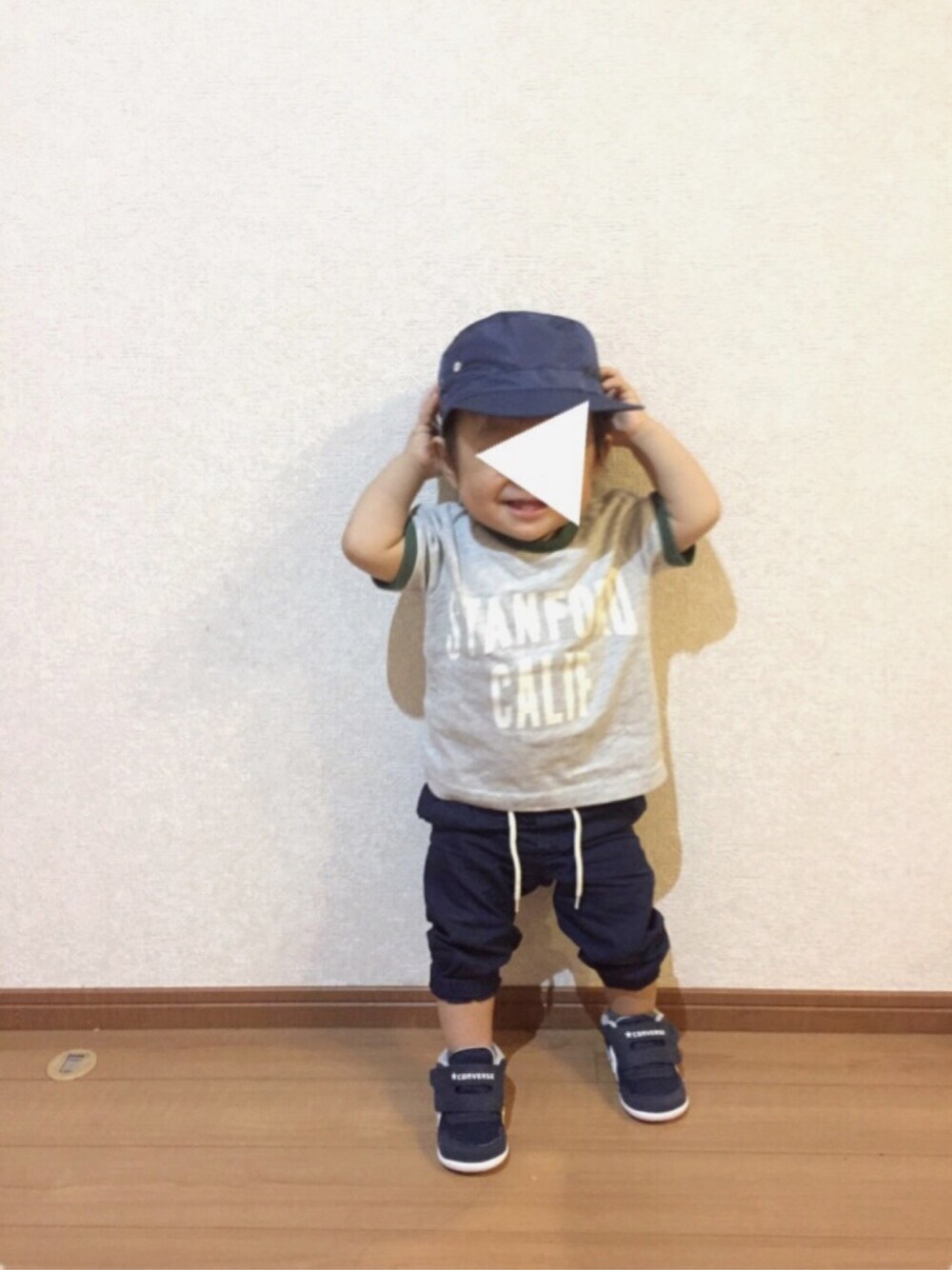 帽子とトップスはSALE価格で半額で購入できた♡ ズボンもお気に入りだけど、パツパツ気味… ワンサイズ上も欲しかったなー。 画像編集(顔のスタンプ)してるせいか、画像がぼけぼけになります。 みなさん、どうやって編集してるんでしょう??