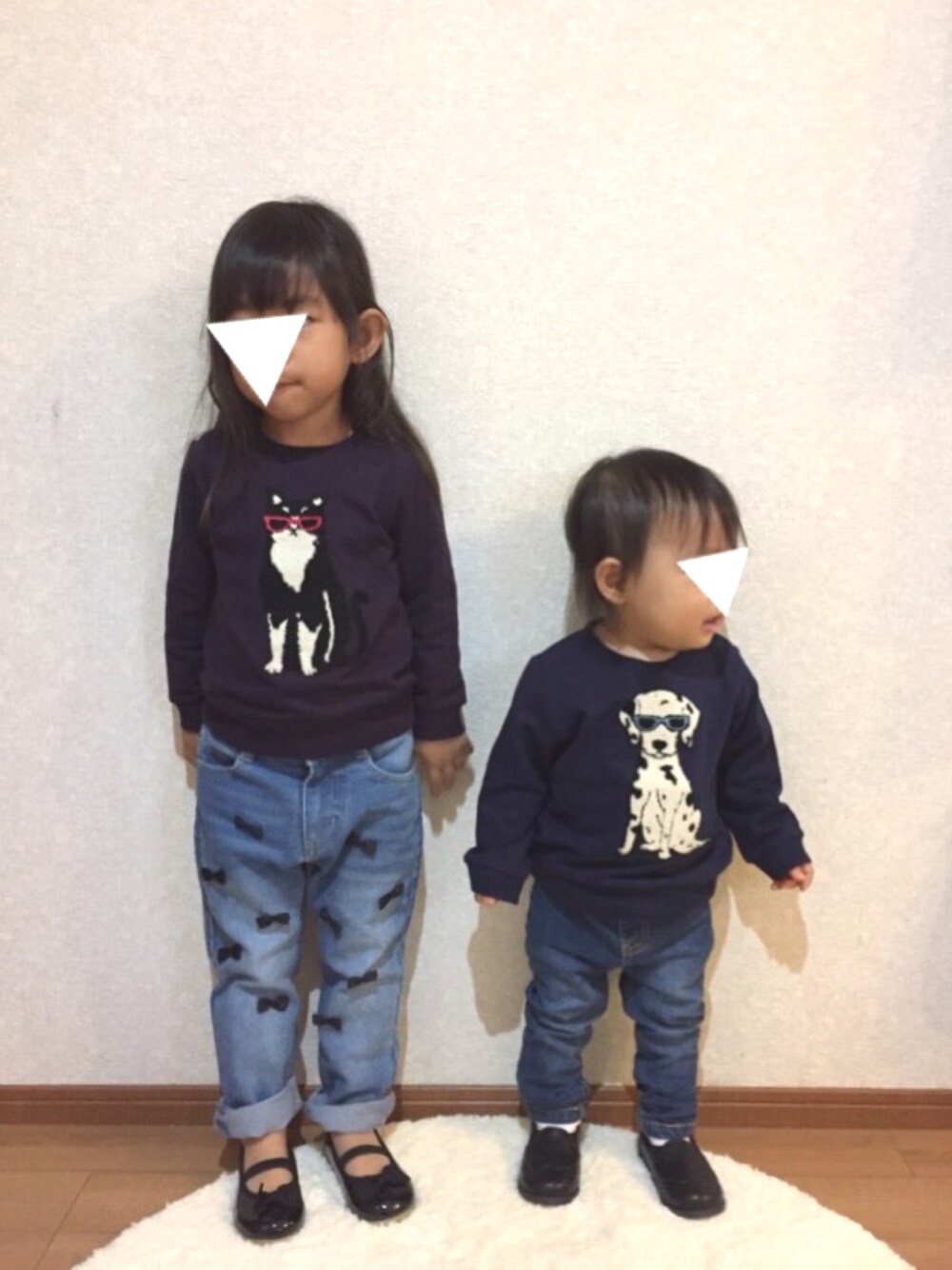 お気に入りの犬猫トップスで、 またまた姉弟リンクコーデ。 姉 100cm トップス 100cm ズボン 100cm