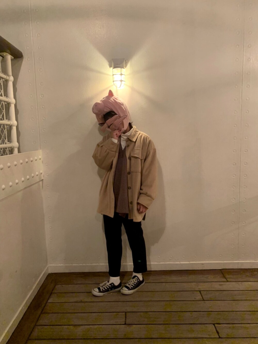 このGUのパンツがめちゃくちゃいい!!色んなコーデに取り入れられる!😌✨コート着てるから分からへんけど中のベストがまた形がめちゃくちゃ可愛い!!