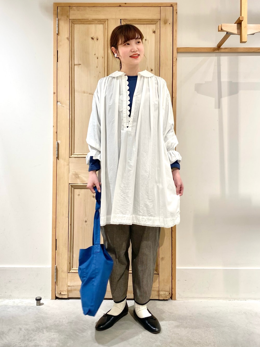Malle chambre de charmeのチュニック「malle コットンポプリン レース編み スモックドレス」を使ったコーディネート