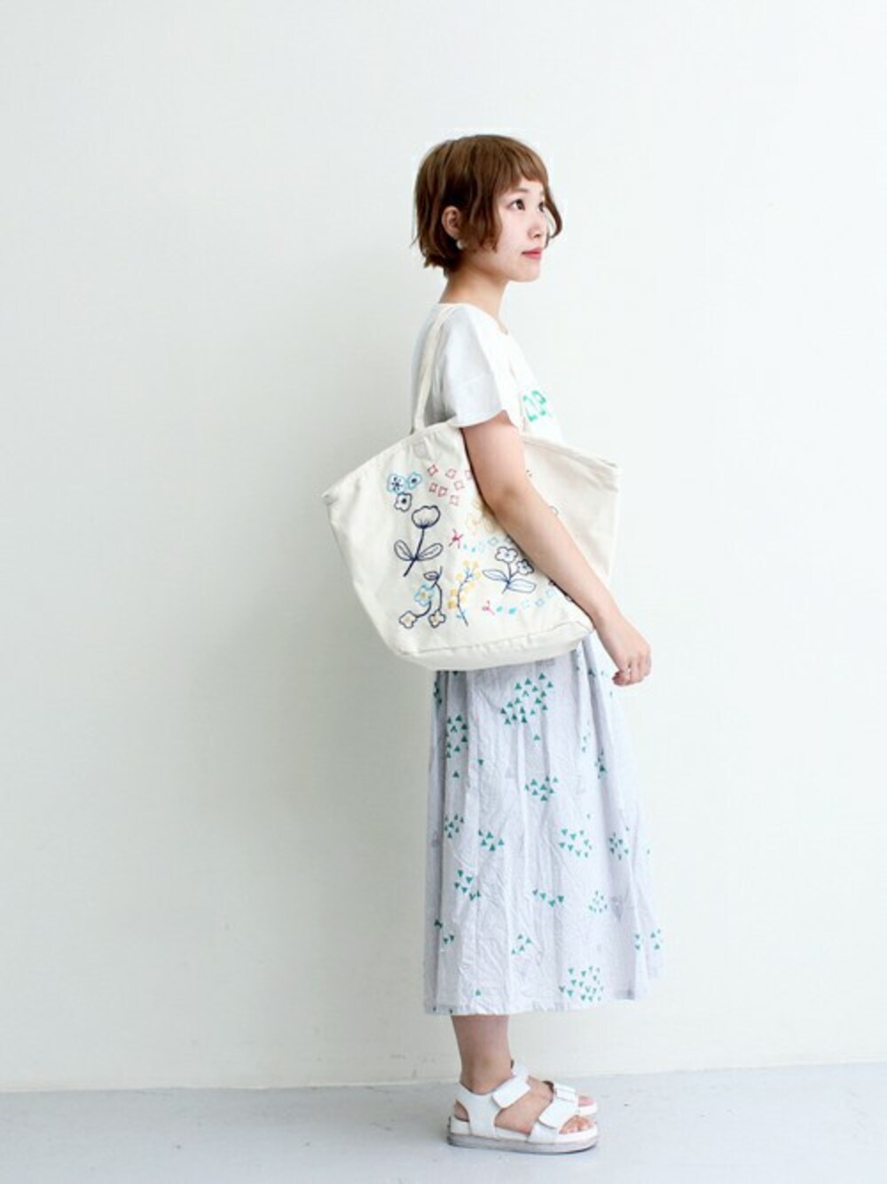 Malle chambre de charmeのトートバッグ「夢の中の花 ハンド刺繍 バッグ 」を使ったコーディネート