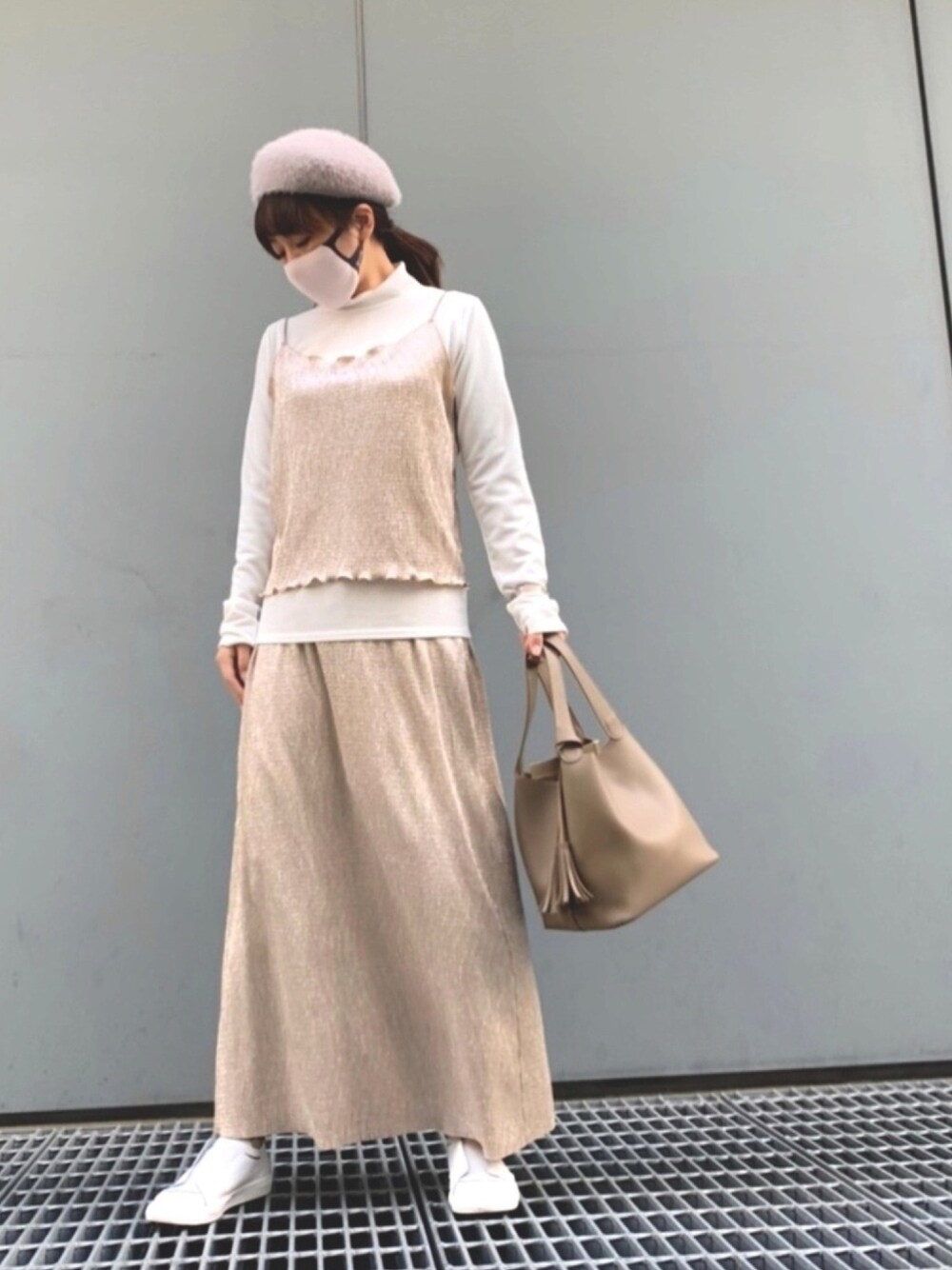 キャミレイヤードは目線も上に、ウエスト位置も高く見せてくれるのでおちびににはありがたいコーデでオススメなんです。で、このキャミ・インナー・スカートがワンセットで売ってるって凄いなーって。。😲セットアップになってるしオシャレ感もアップ✨