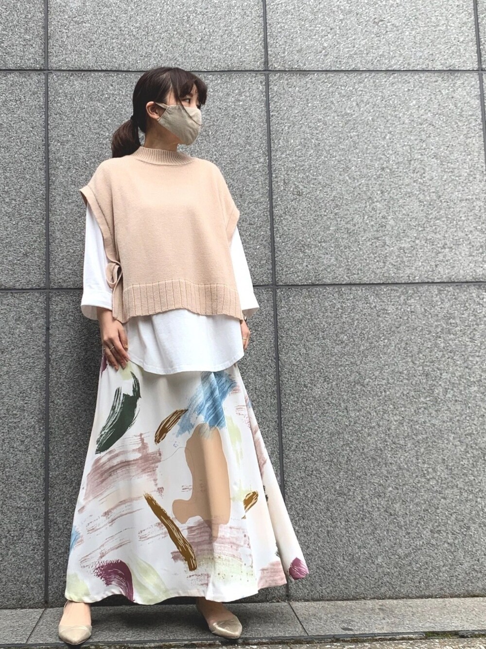 レイヤードトップス、流行ってますが下半身重めのおちびには中々難しいですね。やはりここはロングスカートで…