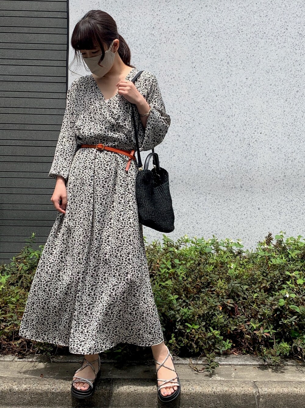 まだ朝晩が肌寒いと薄手の長袖ワンピが活躍してくれます。細かい総柄なのでカラーベルトでウエストマークするとバランスも良くおちびさんにも嬉しい脚長効果がありますよ👍