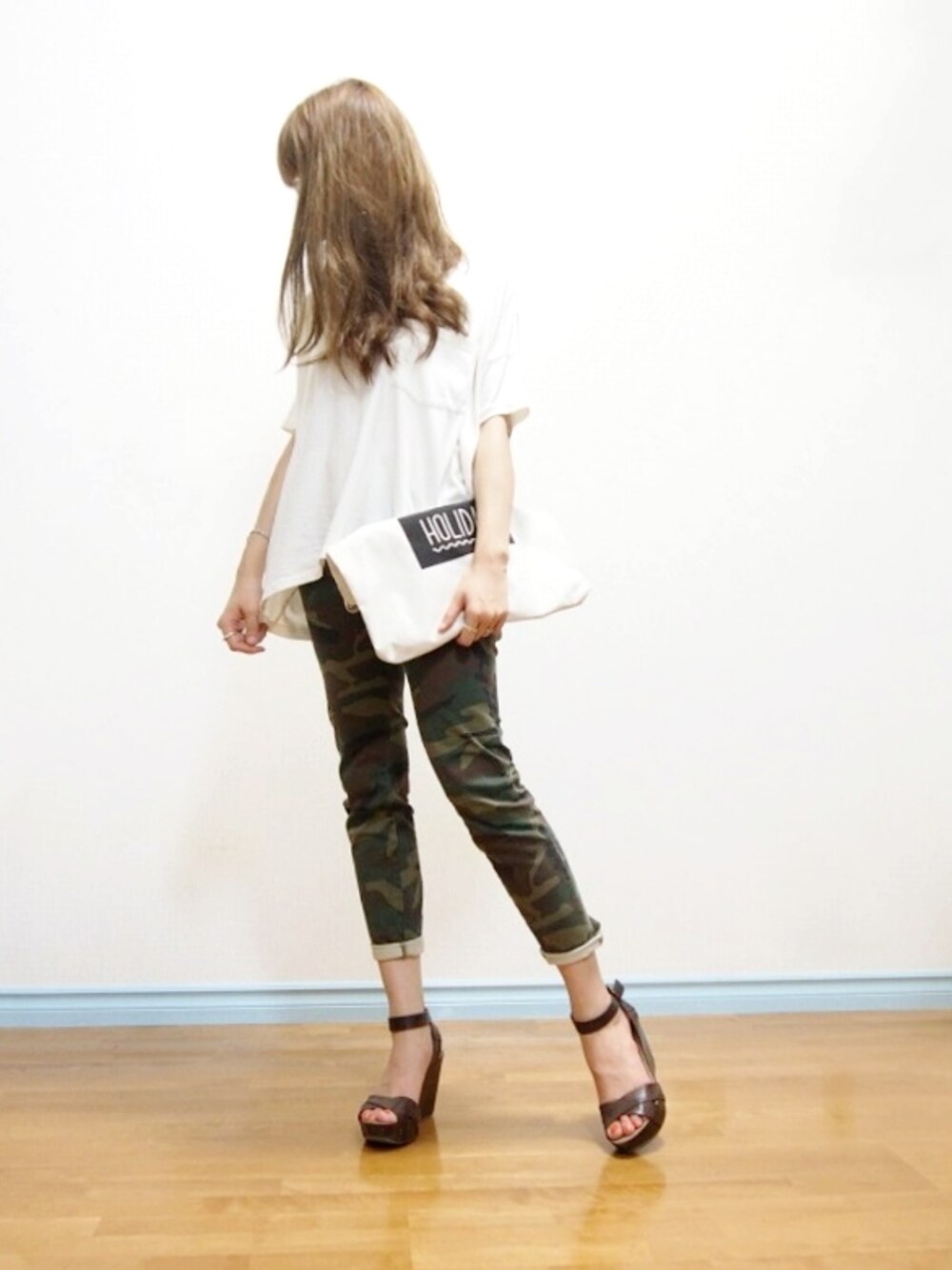 Chamiのその他パンツ「ARMY SKINNY PANTS "迷彩”アーミースキニーパンツ [ショート丈]」を使ったコーディネート