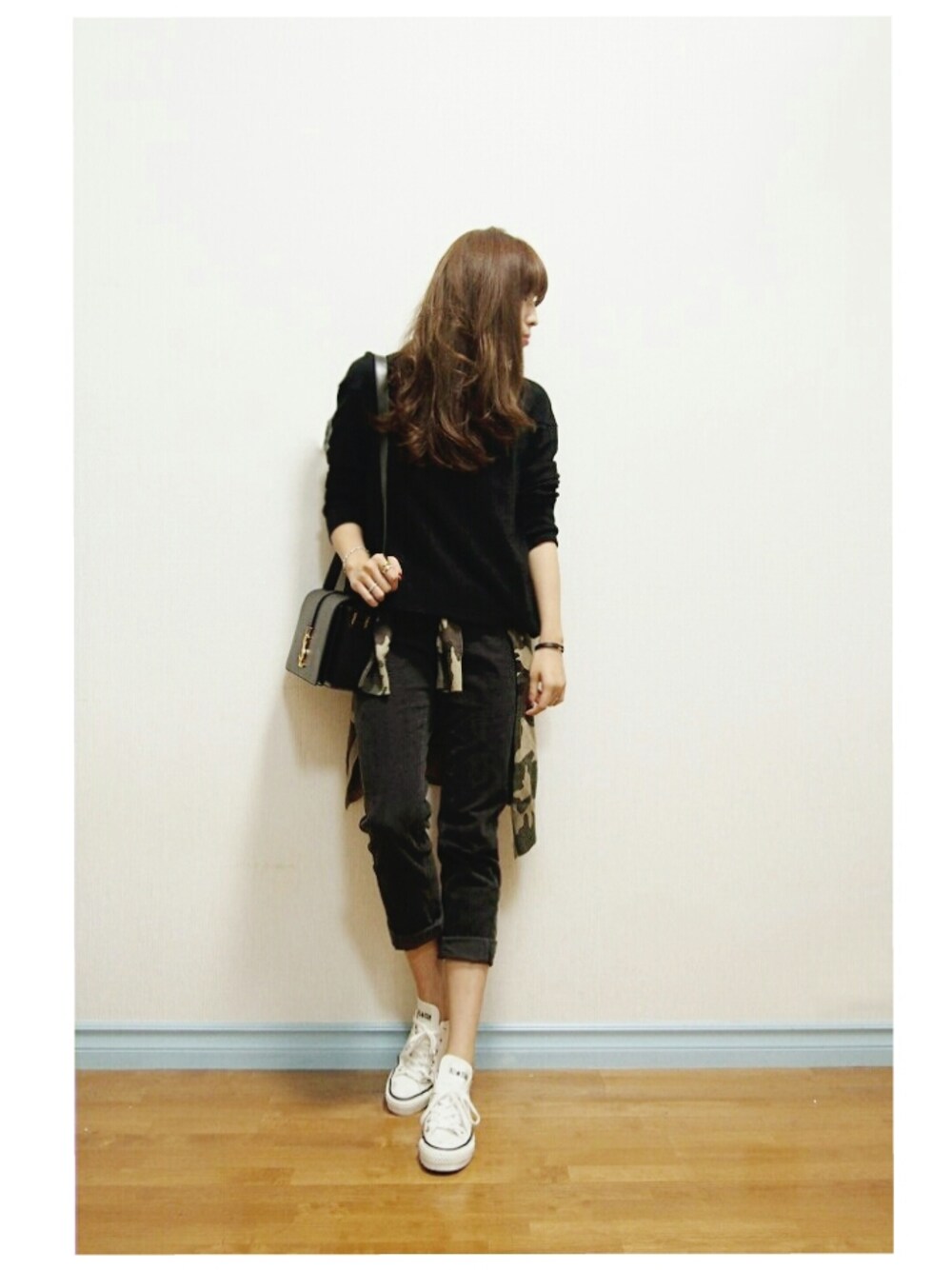 久しぶりにスニーカー履いた気がする! バックはpariで一目惚れした Yves Saint Laurent。 ちょっと大人になった気分です(笑) スウェットは最近みんなのwearでも登場するUNIQLOのやつ。 スカートもあるので、セットアップで今度upしてみよっと。 腰にはカモフラカーデを巻いてアクセントに。 これから渋谷へ♪