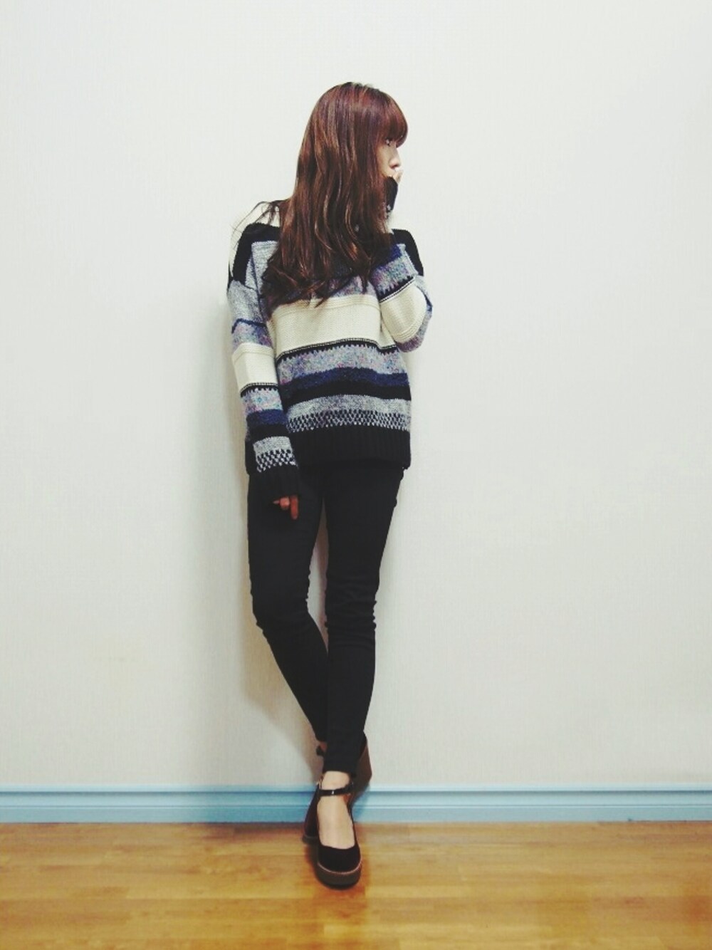 Chamiのニット/セーター「Khaju:カラフルボーダープルオーバー□」を使ったコーディネート