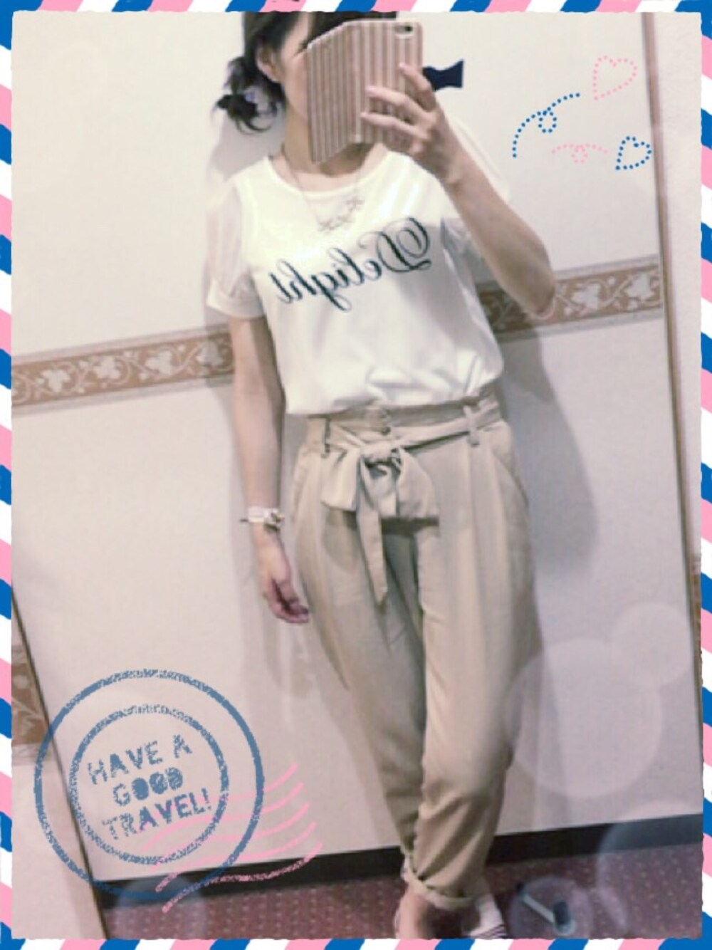 飛行機移動のため ゆるめパンツで
