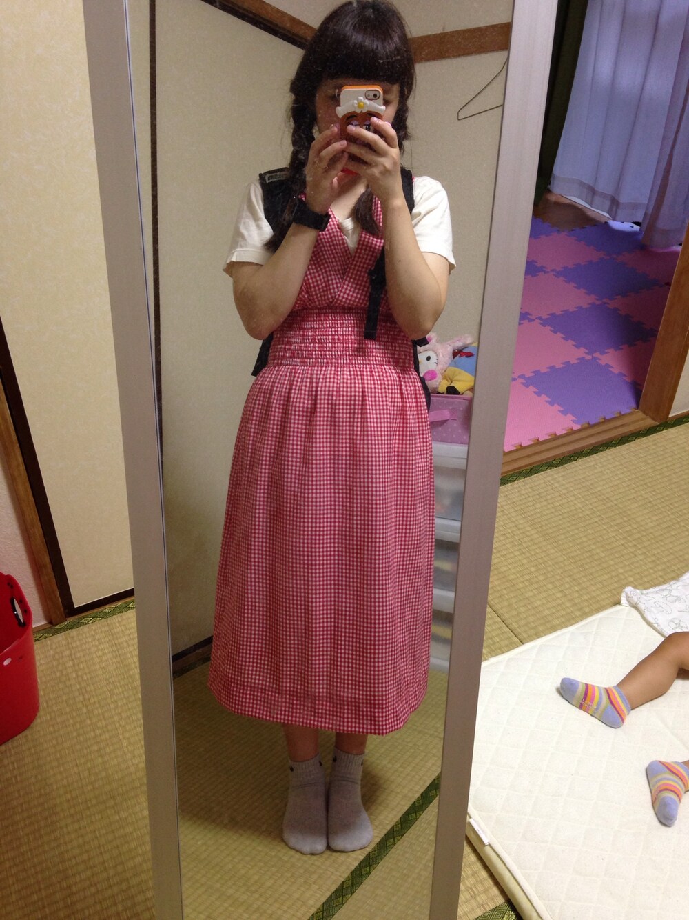 Tシャツ: BEAMS BOY ワンピース: 古着 時計: baby-G ワンピースは足首まであったのを 裾上げしましたー