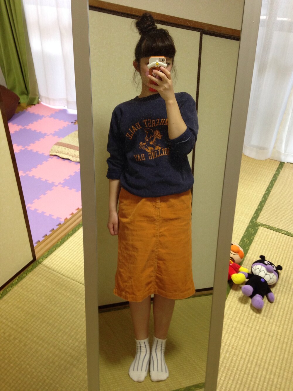 スウェット: 古着 スカート: OLIVE des OLIVE 靴下: 靴下屋 スウェットの季節がきたー♡