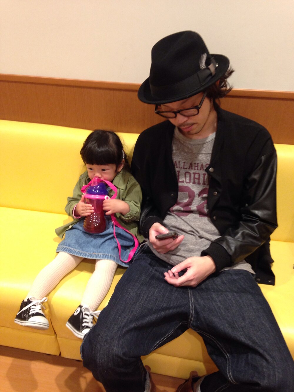シャツ: babyGAP トップス: babyGAP サロペットスカート: babyGAP タイツ: babyGAP マグ: Nuby パパさんのコーデも選びました! 少しは若くなったかな?