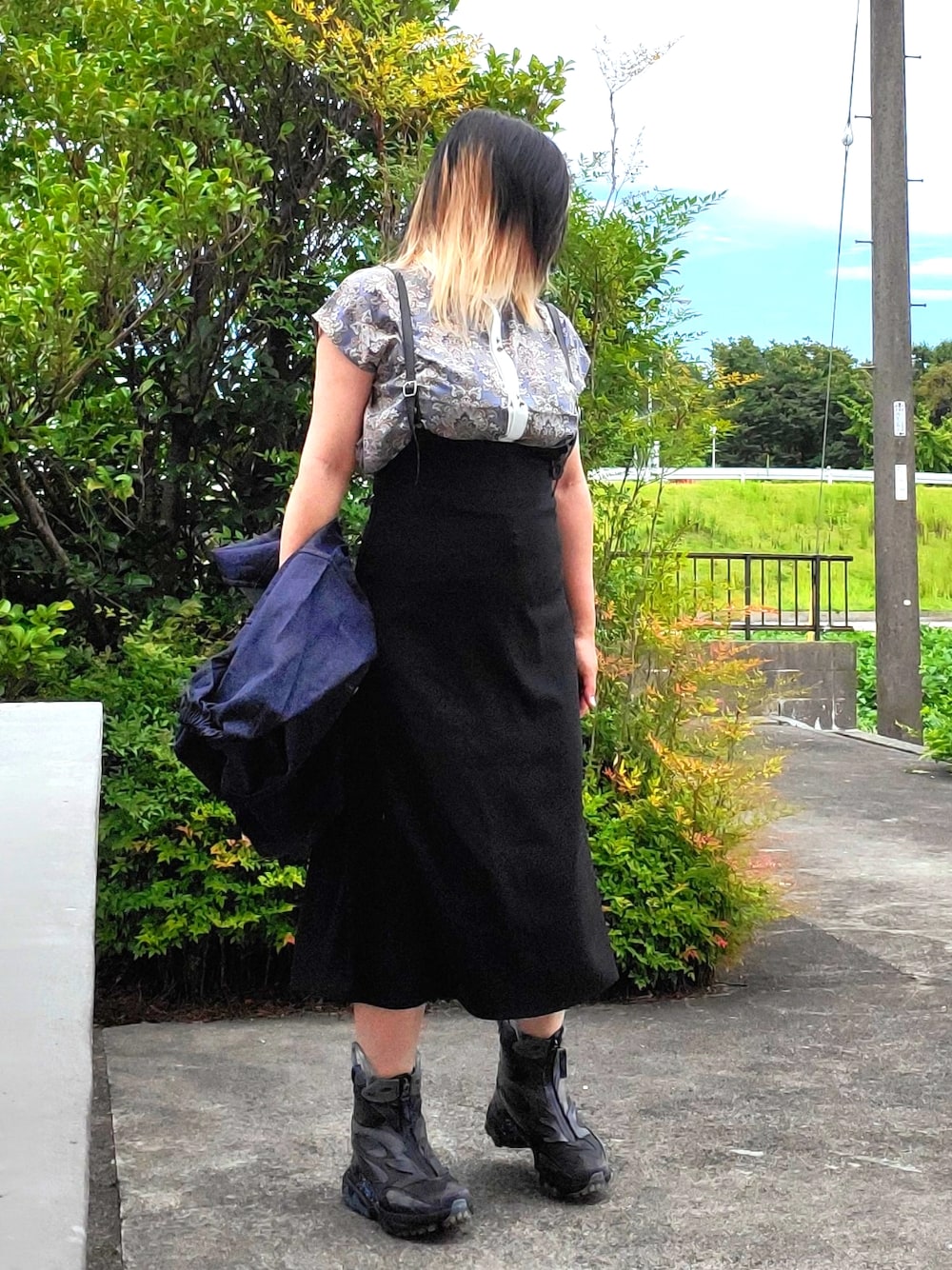 私の身長だとマキシ丈にならない事を知った…… いつも数字と身長近いモデルさん見て吟味してるのですが、身長+私のボリュームが上乗せされてワンピースの丈上がってしまう……… 今回の主役である スニーカーブーツを見せたかったので組んだコーデです。