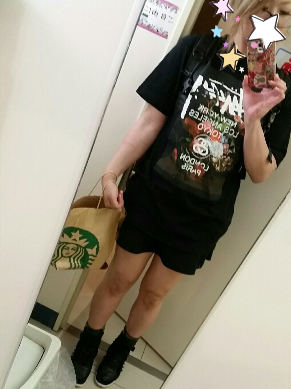 にゃんぱすー!茶みこです‼ 暑い❗いきなり梅雨明けしましたね‼ スタバのチャイラテをがぶ飲みですよ‼ 今日は昨日も履いた‼X-girlのセットアップの スカートを着回し♡♡♡ 超使えるし可愛いのでやたらと履いちゃうなー!今夏個人的に、ストリートとかスケーターかもー! で、今夏ストリート気分なので! ステューシー‼実は初めて買ったよ! メンズsizeにこのスカートいいかもー。 なので明日もこのスカート使って、Tシャツコーデしちゃうかもー! 肌見せフェス前参加しときまーす‼