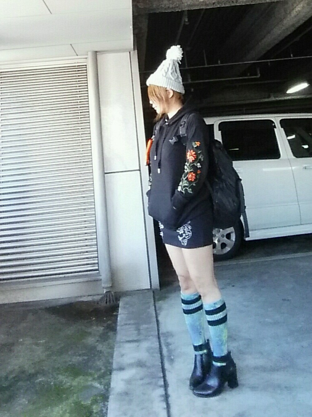 茶みこのパーカー「袖フラワー刺繍パーカー」を使ったコーディネート