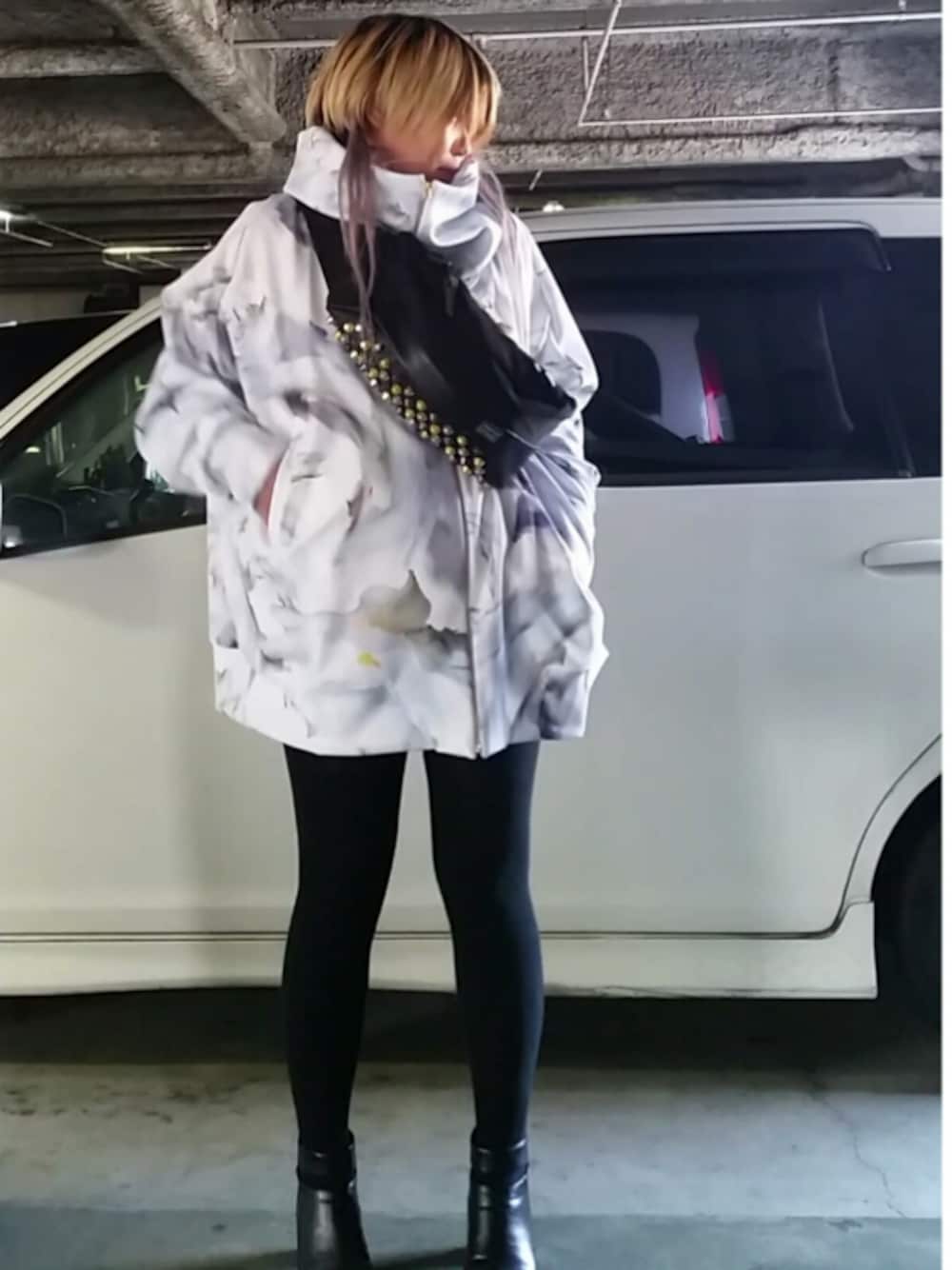 茶みこのボディバッグ/ウエストポーチ「HERMIT.P レザー切り替え底スタッズボディーバッグ」を使ったコーディネート
