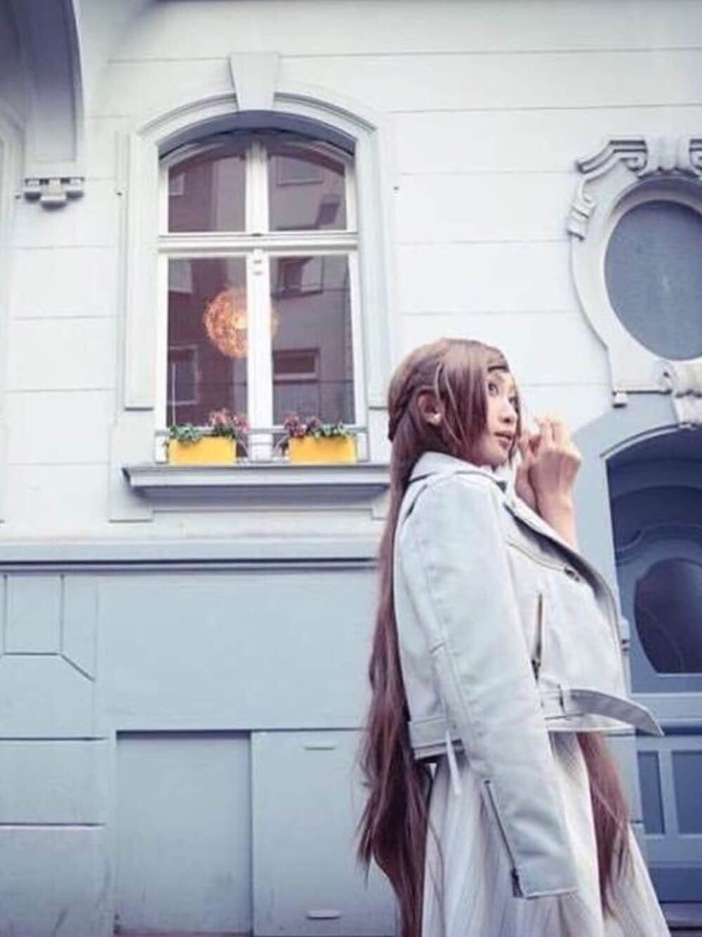 お腹チラ見せワンピにパステル系ライダースの甘すぎないコーデ! 場所はドイツのドゥッセルドルフ! 街並みに合うようなコーディネートを考えてポートレートしてみました☺️