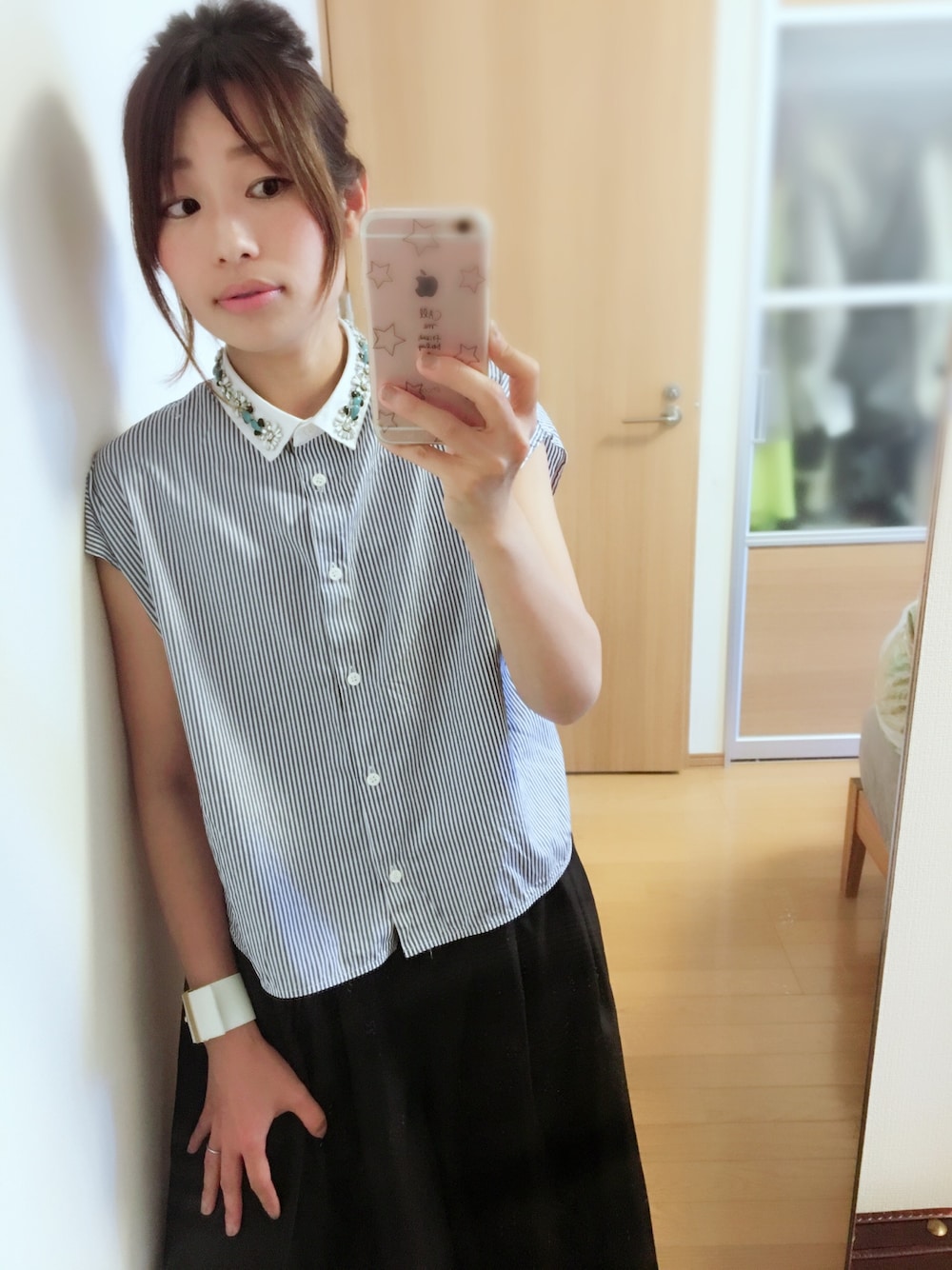 旅行に行ってて、久々更新になっちゃいました😅 襟のビジューがお気に入り♡