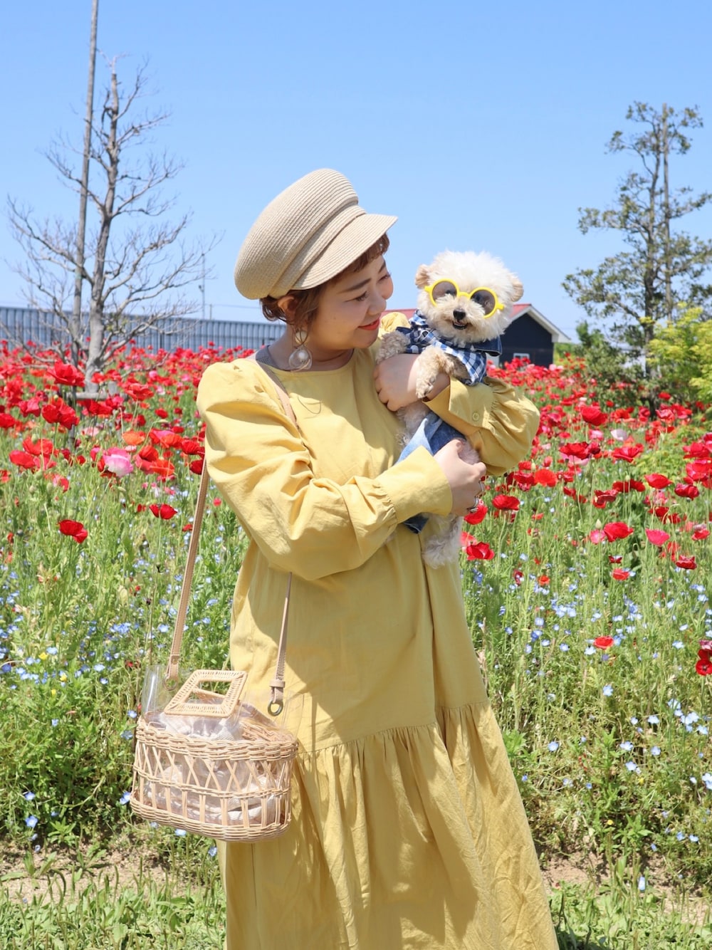 夏アイテム取り入れだしました🌞 とっても天気が良くて蘭丸くんも笑ってる🐶🫧