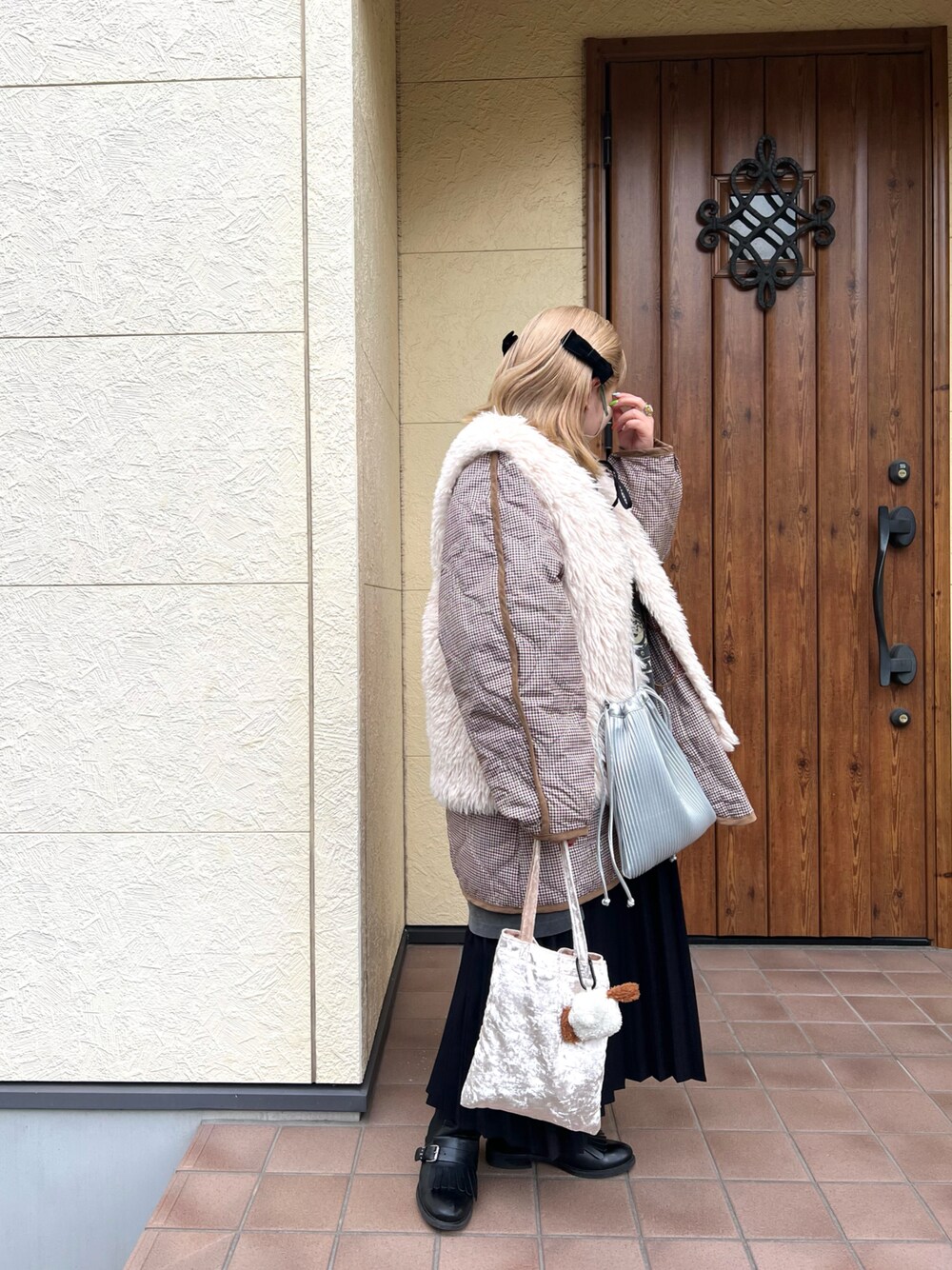 ちゃみまる🐶(BIRTHDAYBAR&KITCHEN 名古屋ラシック店)のショルダーバッグ「フェイクレザー プリーツ 巾着ショルダー」を使ったコーディネート