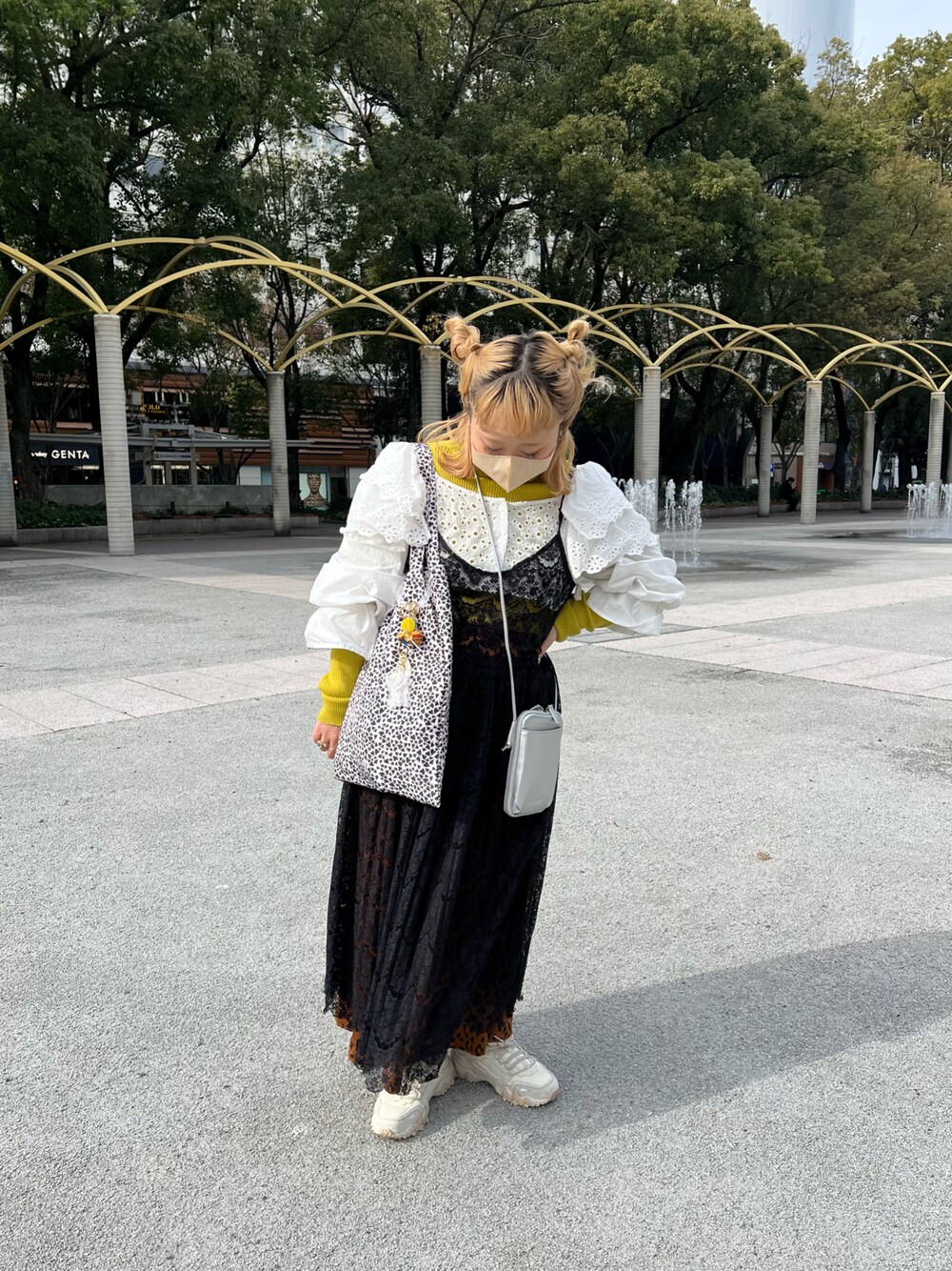 ヘアアレンジに合わせたコーデ💛 個性派コーデにヒョウ柄トートがいいポイントになってる気がする🐆🫶🏻 推しポイントはヒョウ柄がさりげにハートになってるところです🖤