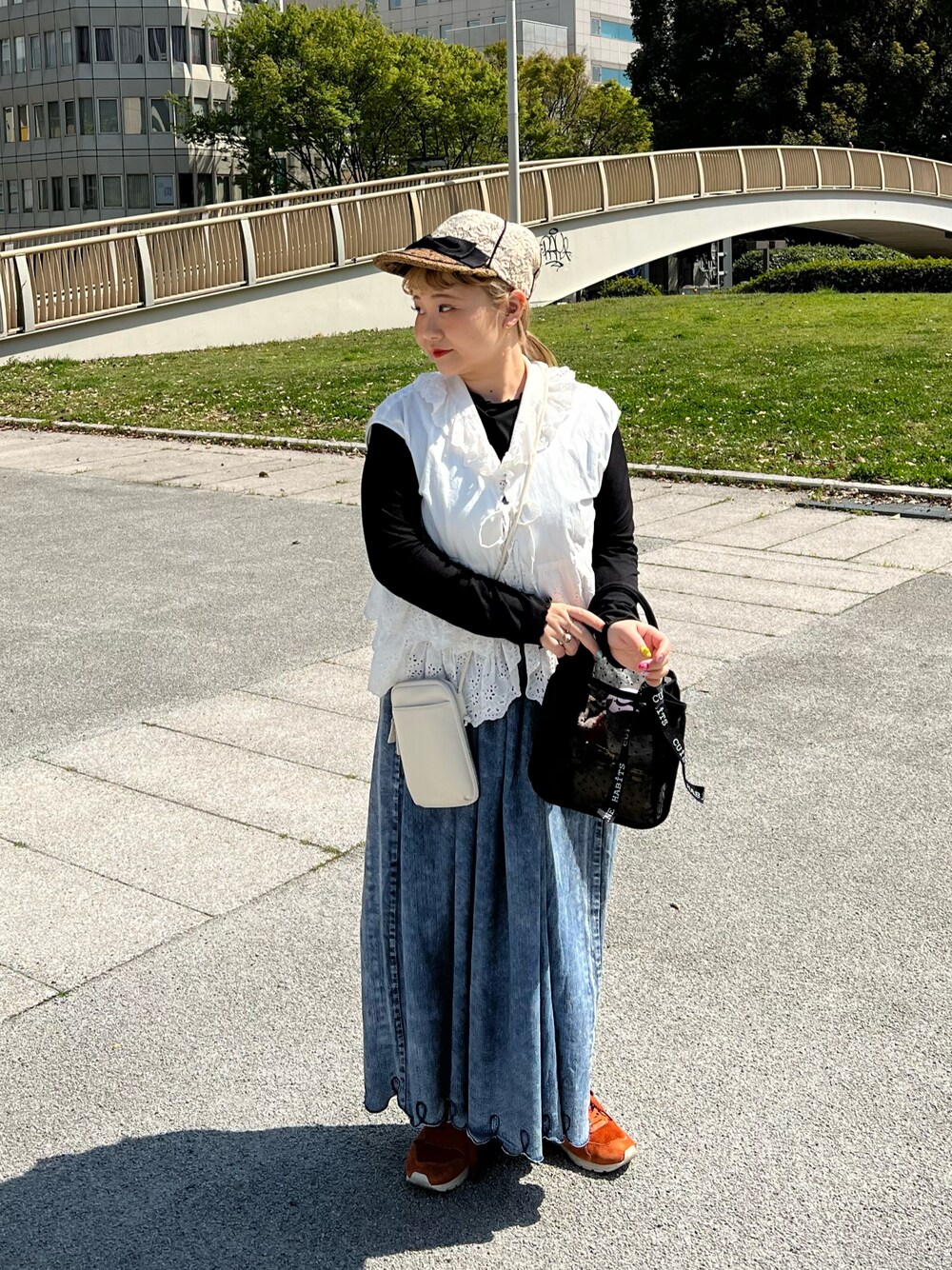 去年、即完したスクエアミニトートのドットメッシュ!!! 今年はドットが小さくなりました🖤 スクエアトートとスマホショルダーの組み合わせが1番のお気に入り🌼🌼🌼
