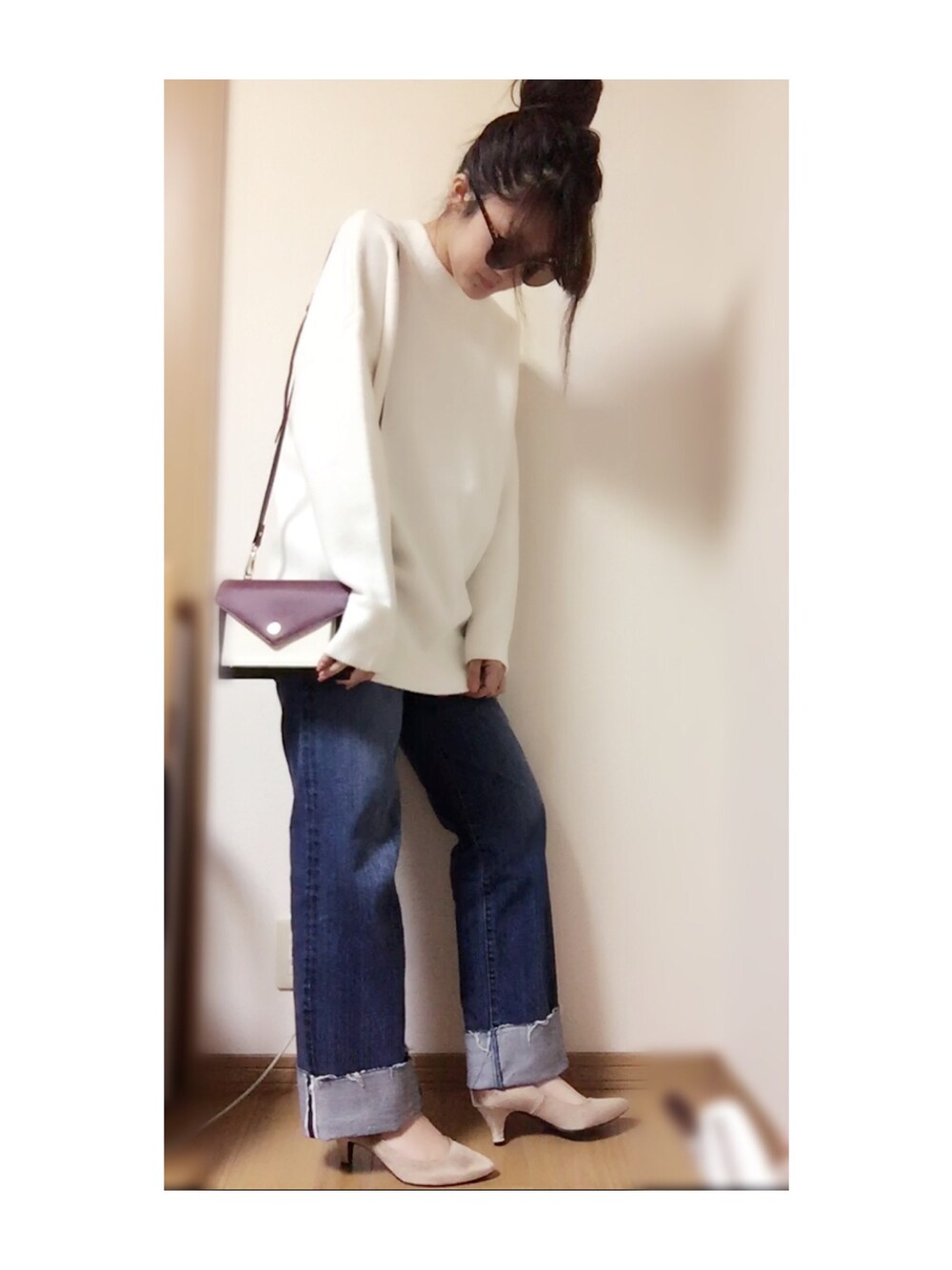 ビッグシルエットのニットに ストレートなワイドパンツ♡ ルーズなスタイリングがお決まりで好き♡ JELLY BEANSのベロアパンプス♡ ふわふわのインソールで疲れ知らずだし ベロアもチープに見えない!♡ スエードとはまた違った雰囲気で 足元がちょっと大人な印象になりそう♡← 気に入りすぎて、イロチ買いしました。