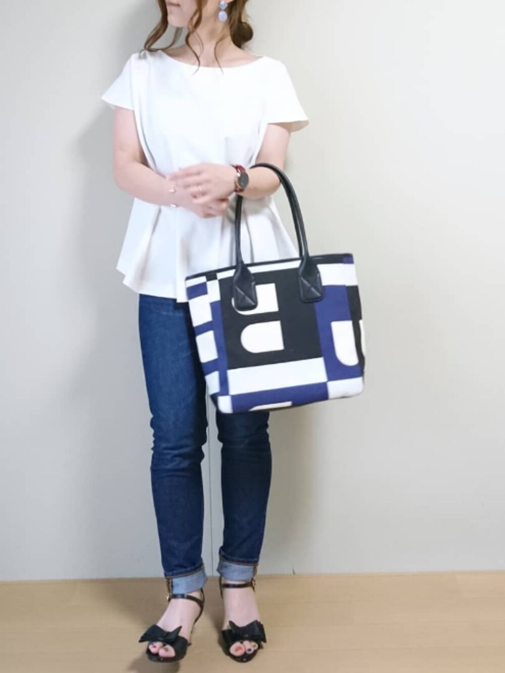 いいね、お気に入り、フォロー、ありがとうございます⭐ ホワイト×ブルーのシンプルコーデ😀 LIMIA/CHAMU Instagram/chamu_wear