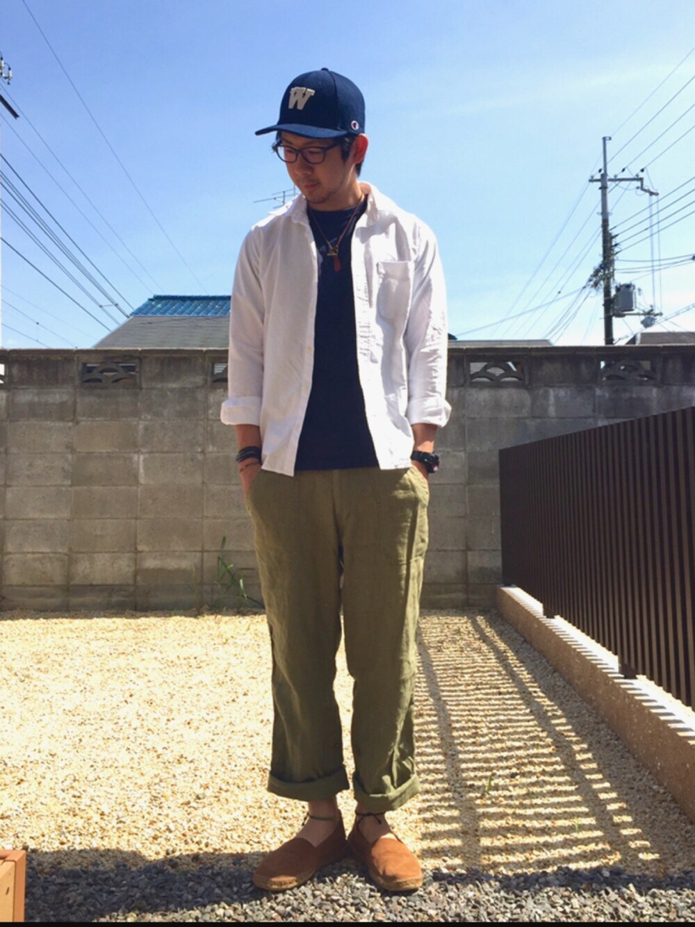 カーキのパンツはリネン素材。 これからの時期はリネン素材が大活躍✨ Right-onの チャンピオンTシャツ💡 2枚目以降割引システムはありがたい🎶