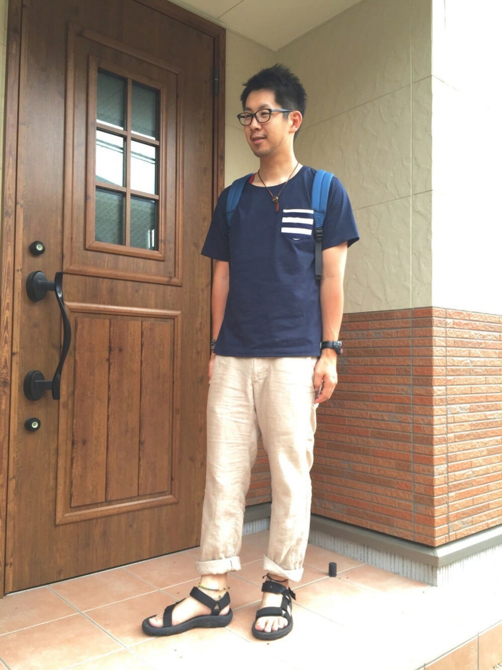 ゆるコーデ💡 Tシャツのポケットのワンポイントがお気に入り✨ インナーに赤を取り入れてみました!