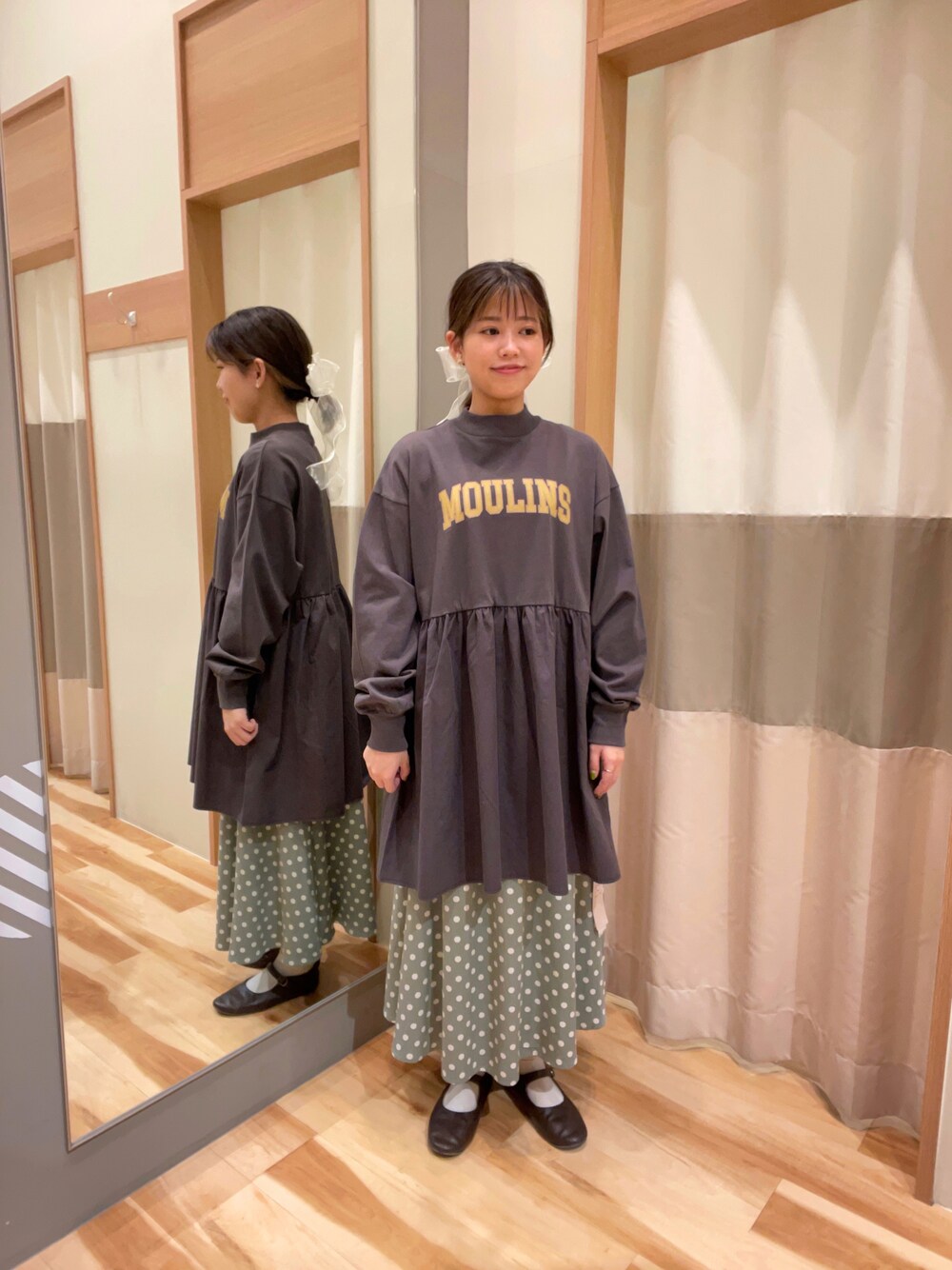 おはようございます✨ アクセスありがとうございます! チュニックの立体感がとっても可愛いです🥺 色違いを購入しました🫶🏻 チャコールとミントの相性抜群です💮 それぞれ別のカラーもございますので、是非お近くの店舗でご覧下さい😊 モレラ岐阜店でもお待ちしております💕 ゆま🌻