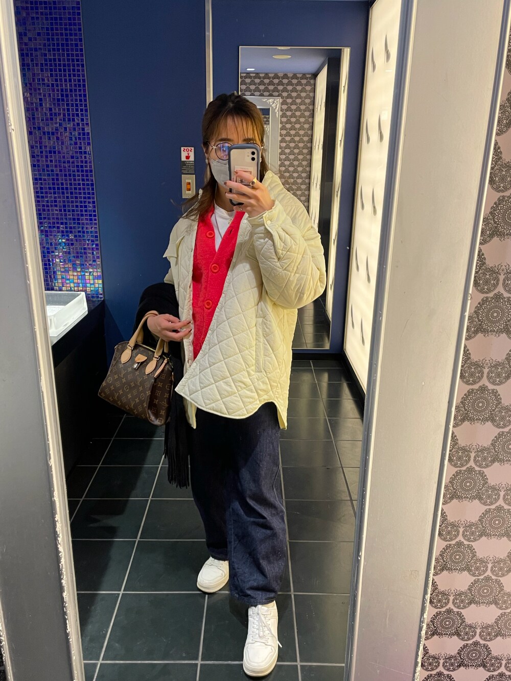 寒いけど新しいアウター着たくて中はあったかめに☺️#カラーカーディガン